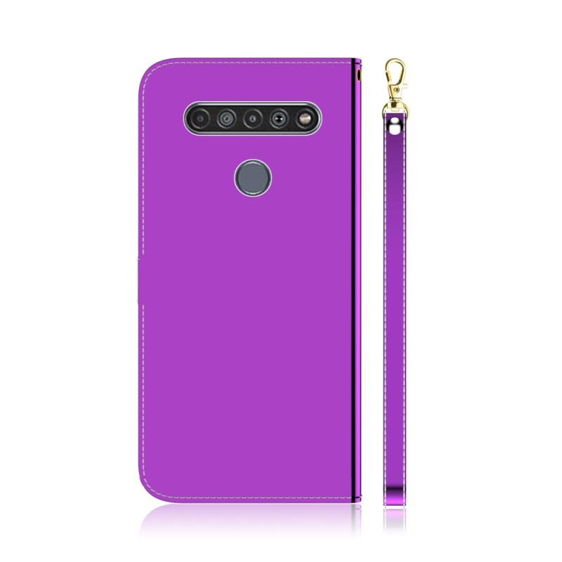 For LG K61 Lmitated Mirror Surface Horizontal Flip Leather Case with Holder & Card Slots & Wallet & Lanyard(Purple)