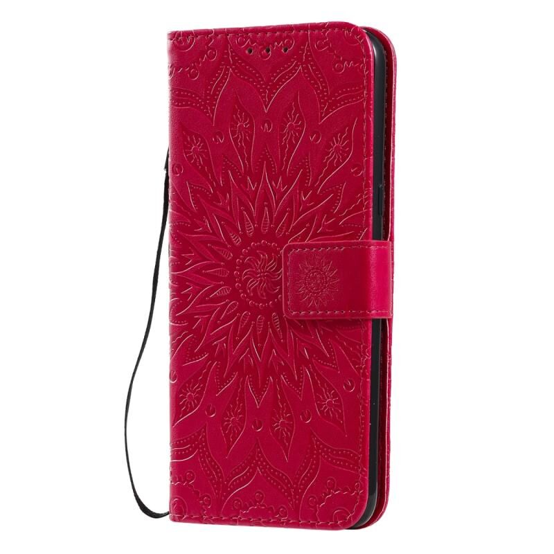 Για LG K61 Πιεσμένη εκτύπωση ηλιοτρόπιο μοτίβο οριζόντια Flip PU δέρμα θήκη κάτοχος & υποδοχές για κάρτες & πορτοφόλι & κορδόνι (κόκκινο)