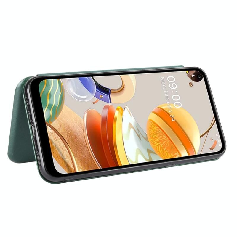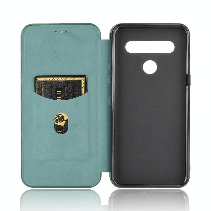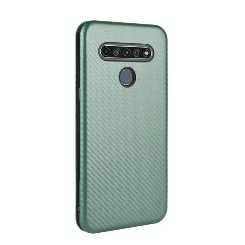 Για LG K61 / Q61 Carbon Fiber υφή οριζόντια Flip TPU + PC + PU δέρμα υπόθεση με υποδοχή κάρτας (πράσινο)