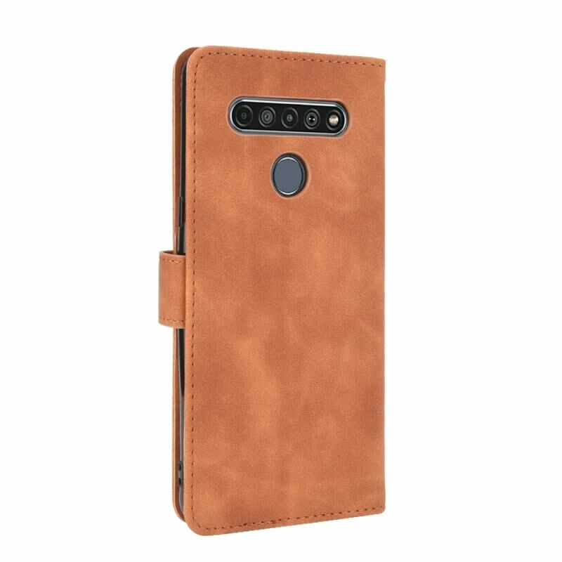 Για το LG K61 / Q61 Solid Color Skin Feel μαγνητική πόρπη οριζόντια Flip μοσχάρι υφή PU δέρμα υπόθεση με κάτοχο & υποδοχές για κάρτες & πορτοφόλι (καφέ)