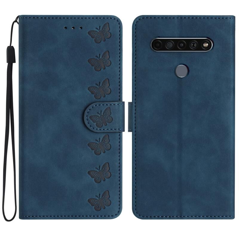 Για LG K61 Επτά πεταλούδες ανάγλυφη δερμάτινη θήκη τηλεφώνου (μπλε)