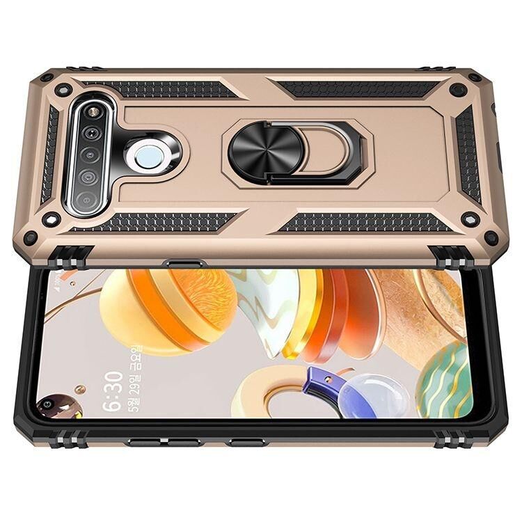 Θήκη προστασίας για LG K61 από TPU + PC ανθεκτική στις κρούσεις με περιστρεφόμενη βάση 360 μοιρών (Χρυσό)