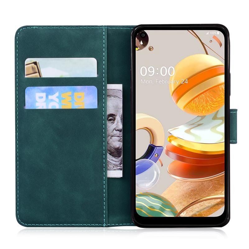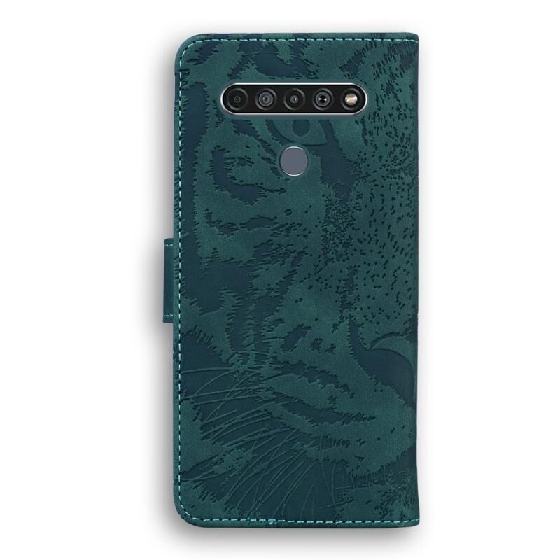 Θήκη δέρματος οριζόντιας αναδίπλωσης με ανάγλυφο σχέδιο τίγρης για LG K61 με βάση & υποδοχές καρτών & πορτοφόλι (Κόκκινο)