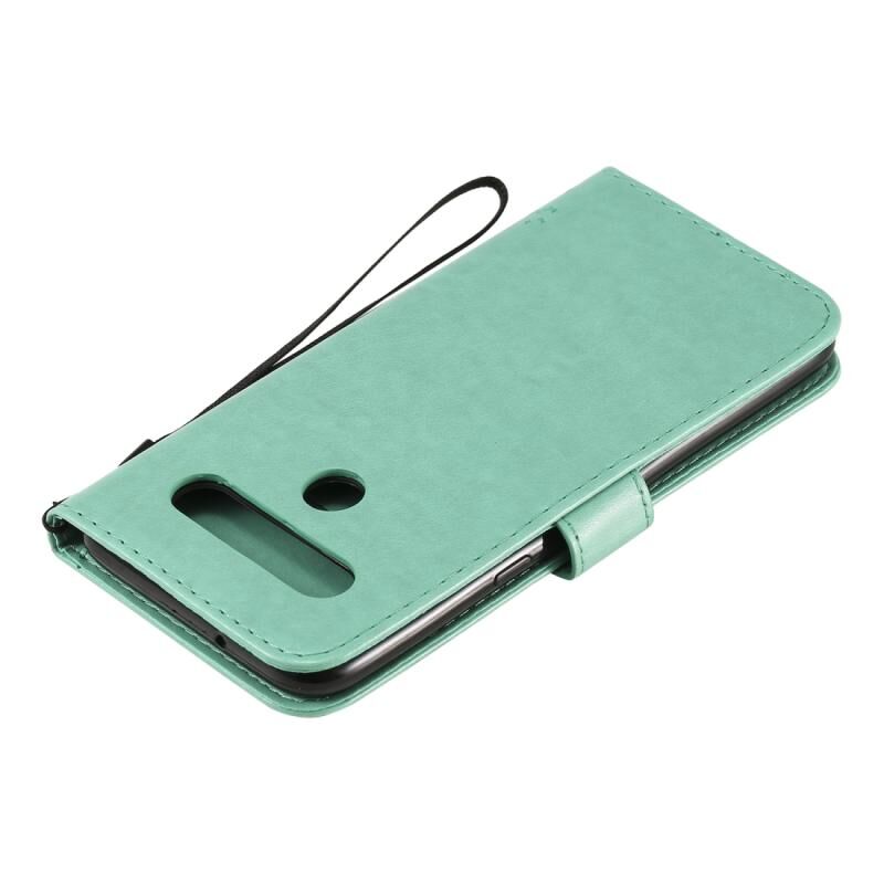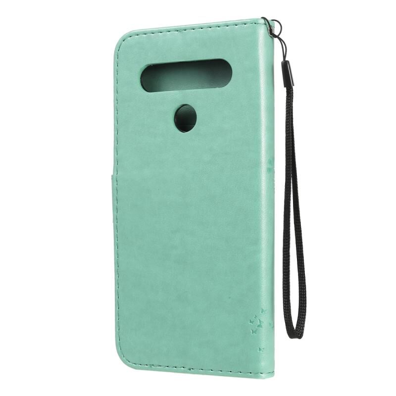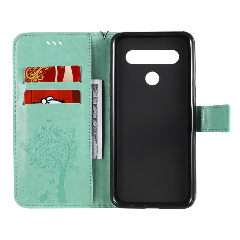 Θήκη για LG K61 με ανάγλυφο σχέδιο Δέντρου & Γάτας, οριζόντια, από δέρμα με βάση στήριξης, θήκες για κάρτες, πορτοφόλι & λουρί (Πράσινο)