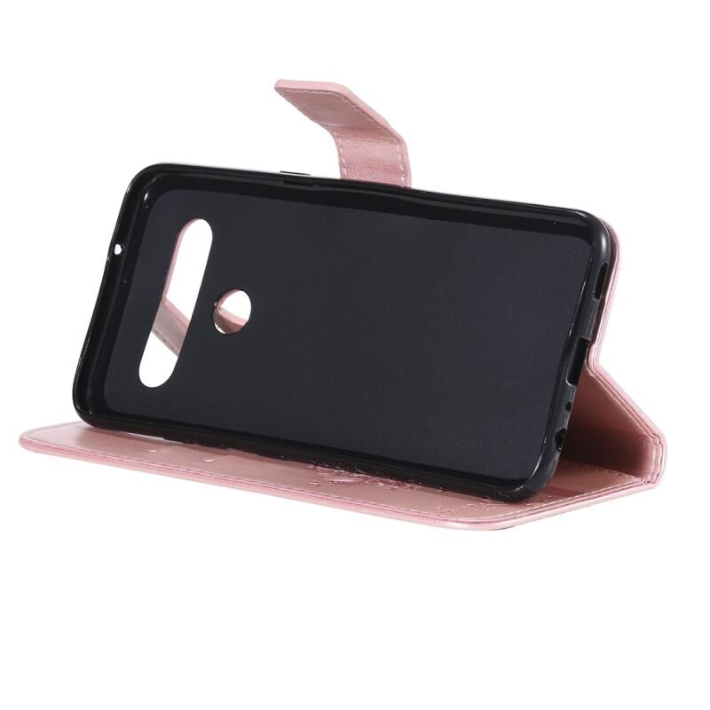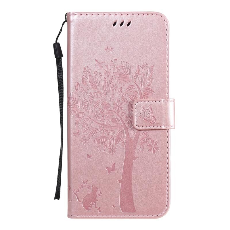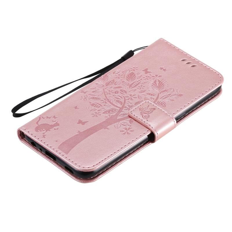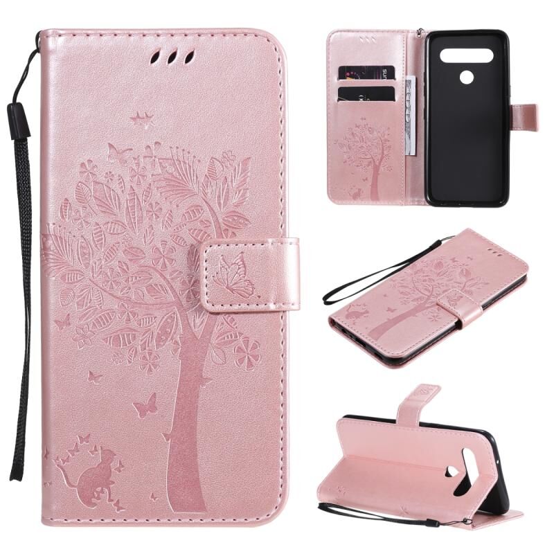 Θήκη για LG K61 με ανάγλυφο σχέδιο Δέντρου & Γάτας, οριζόντια, από δέρμα με βάση στήριξης, θήκες για κάρτες, πορτοφόλι & λουρί (Ανοιχτό Μωβ)