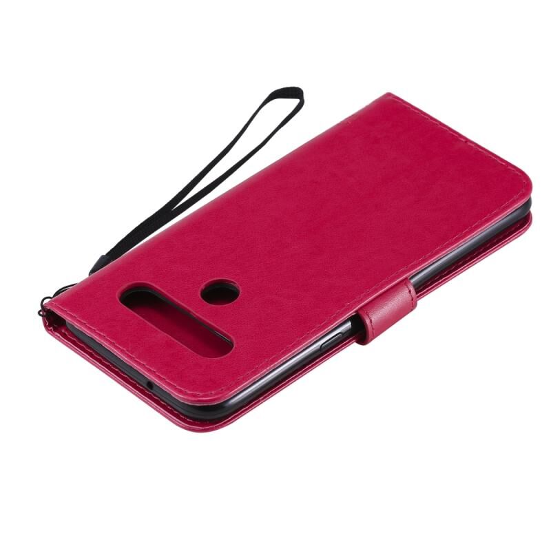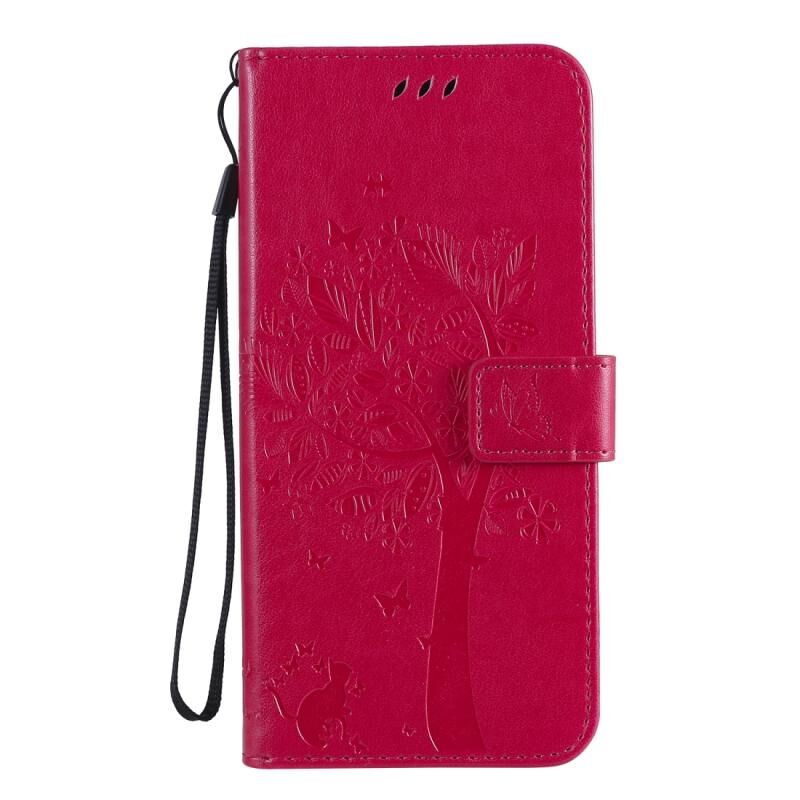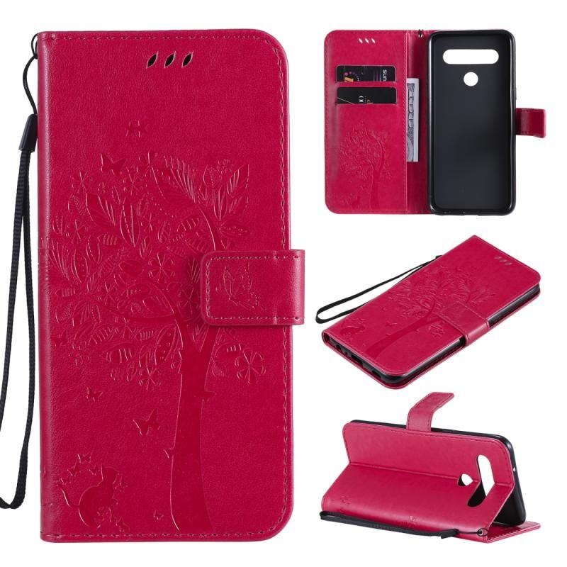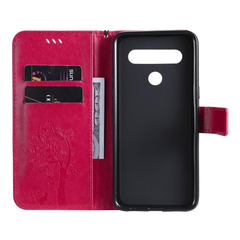Θήκη για LG K61 με ανάγλυφο σχέδιο Δέντρου & Γάτας, οριζόντια, από δέρμα με βάση στήριξης, θήκες για κάρτες, πορτοφόλι & λουρί (Ανοιχτό Μωβ)