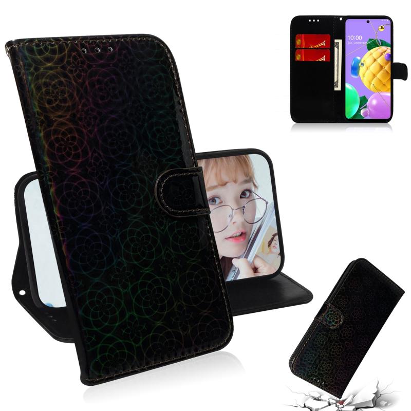 For LG K62 / K52 / Q52 Solid Color Colorful Magnetic Buckle Horizontal Flip PU Leather Case with Holder & Card Slots & Wallet & Lanyard(Black)