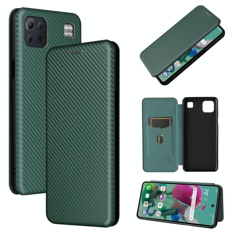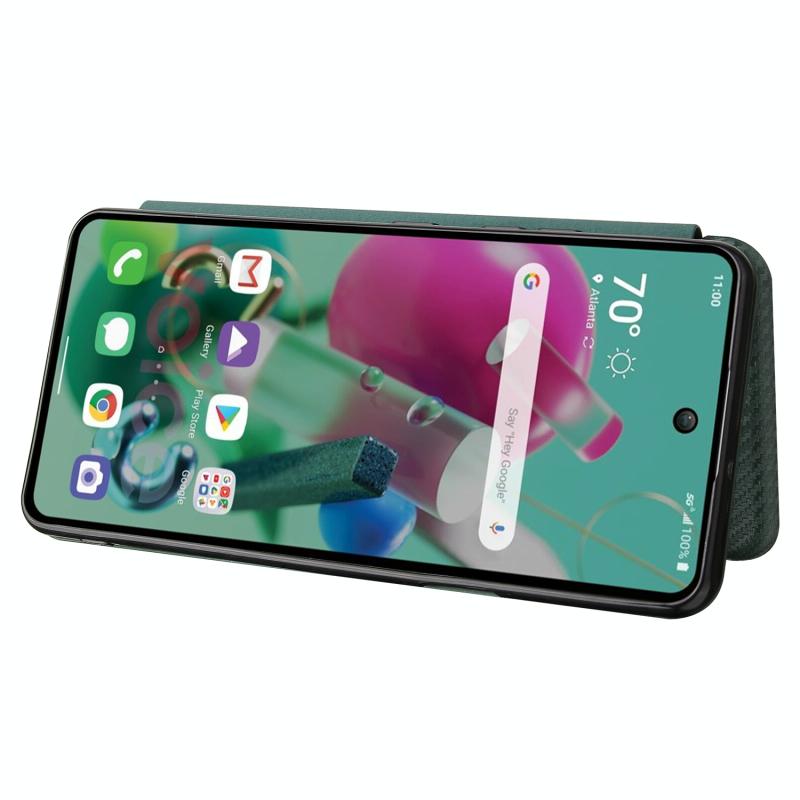 For LG K92 5G Carbon Fiber Texture Horizontal Flip TPU + PC + PU Leather Case with Card Slot(Green)