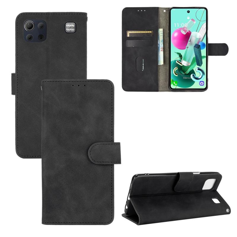 For LG K92 5G Solid Color Skin Feel Magnetic Buckle Horizontal Flip Calf Texture PU Leather Case with Holder & Card Slots & Wallet(Black)