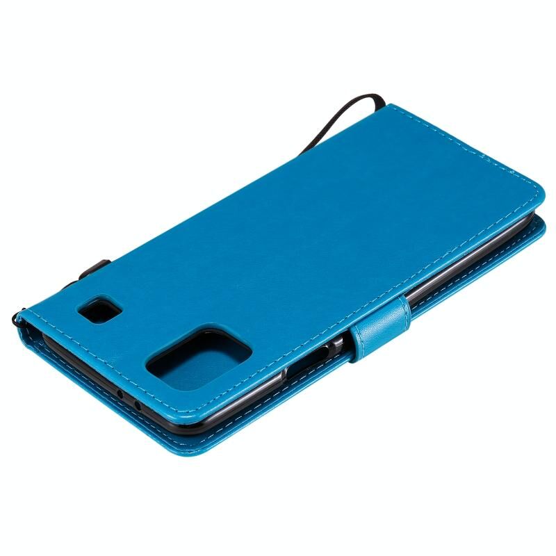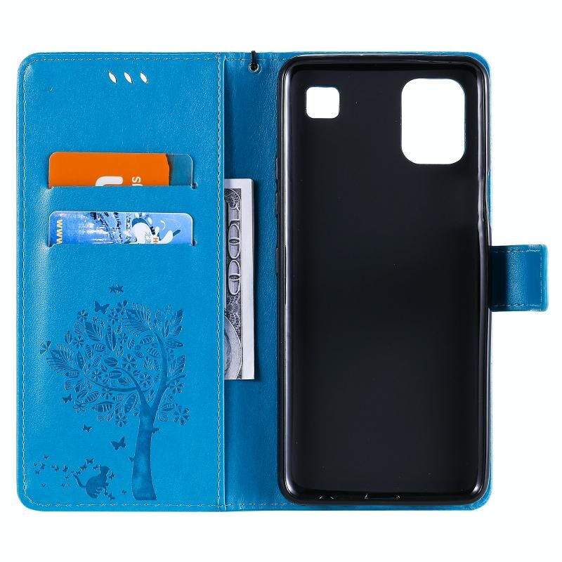 For LG K92 5G Tree & Cat Pattern Pressed Printing Horizontal Flip PU Leather Case with Holder & Card Slots & Wallet & Lanyard(Blue)