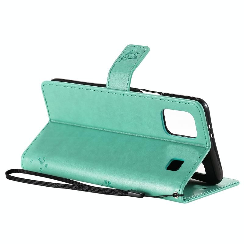 For LG K92 5G Tree & Cat Pattern Pressed Printing Horizontal Flip PU Leather Case with Holder & Card Slots & Wallet & Lanyard(Green)
