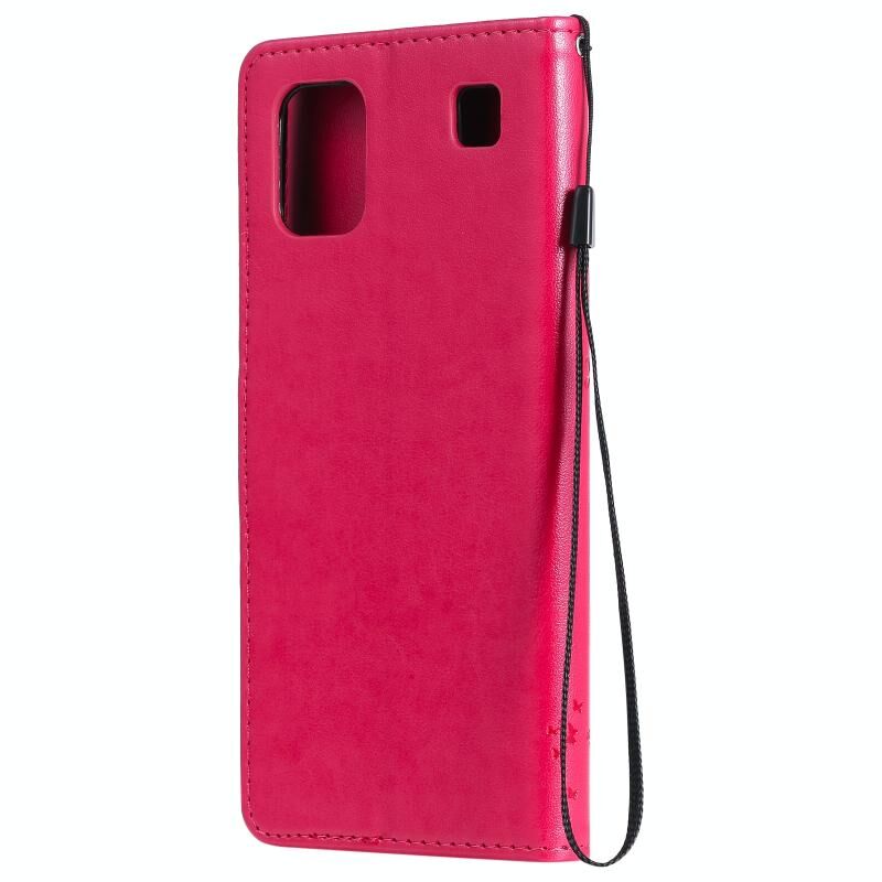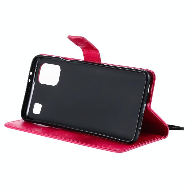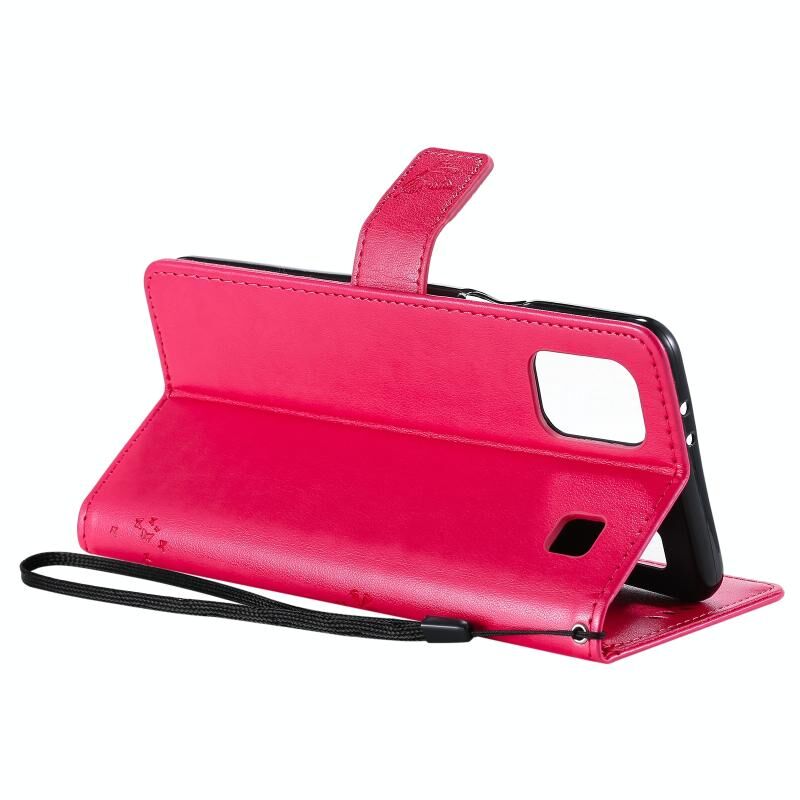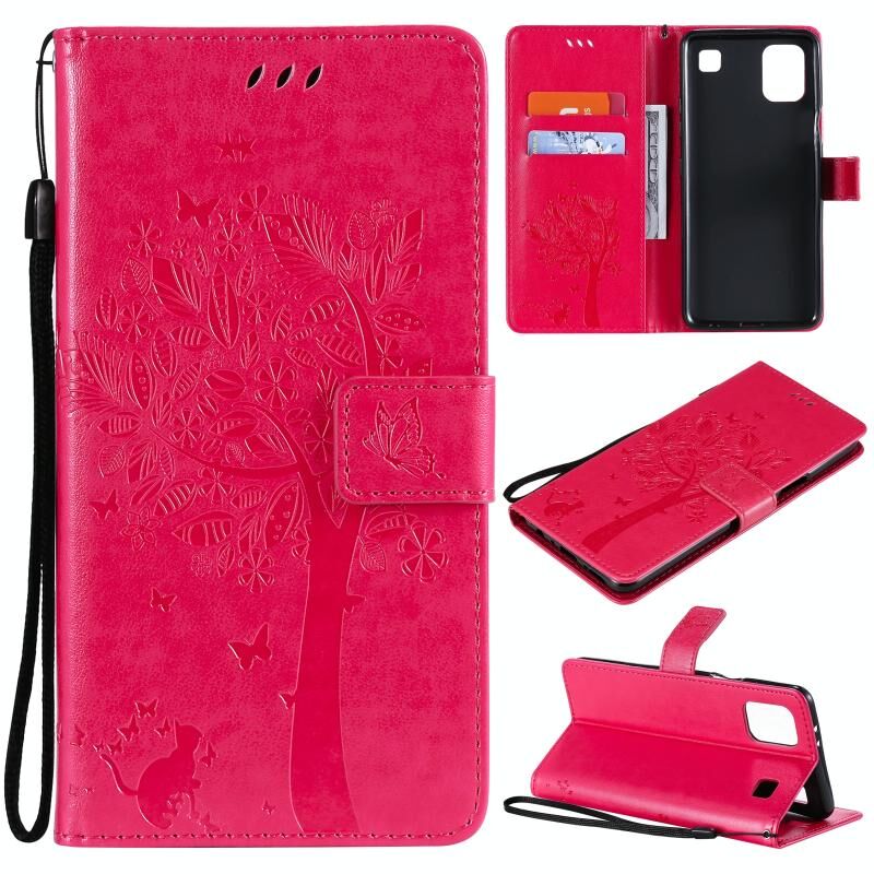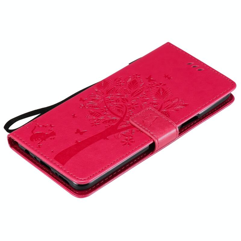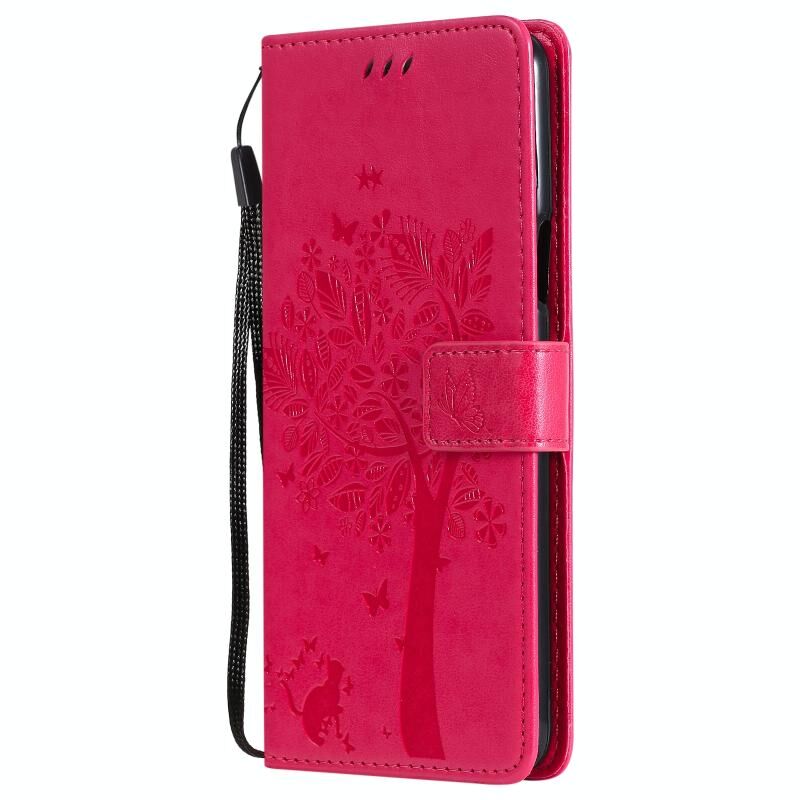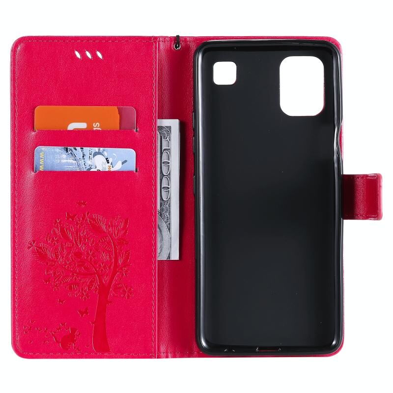For LG K92 5G Tree & Cat Pattern Pressed Printing Horizontal Flip PU Leather Case with Holder & Card Slots & Wallet & Lanyard(Rose Red)