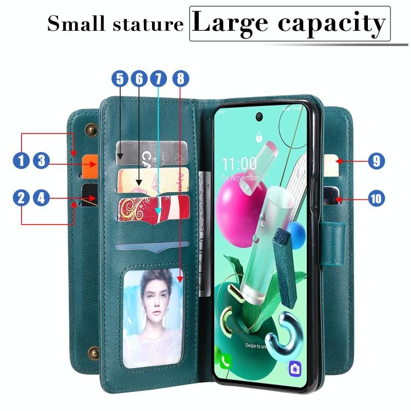 Για LG K92 Πολυλειτουργική μαγνητική χαλκός πόρπη οριζόντια Flip Solid Color δερμάτινη θήκη με 10 υποδοχές για κάρτες & πορτοφόλι & κάτοχος & πλαίσιο φωτογραφιών (Rose Gold)