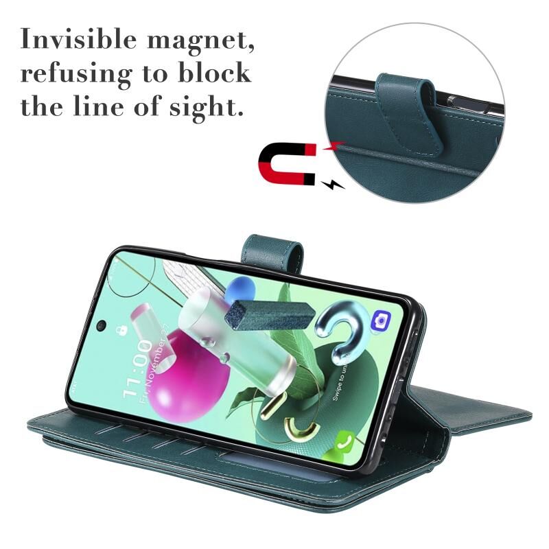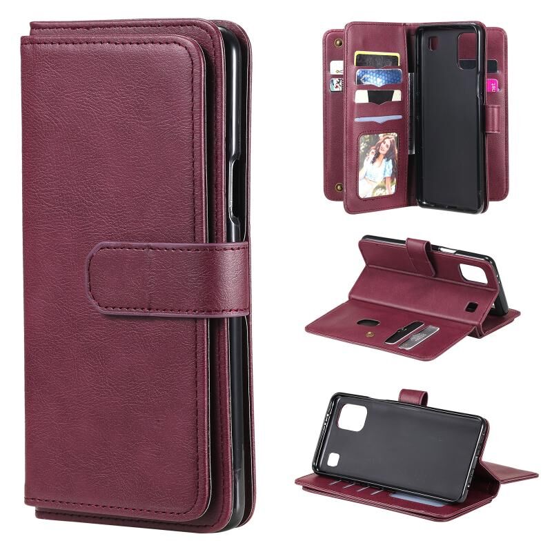 Για το LG K92 Πολυλειτουργική μαγνητική χάλκινη πόρπη Οριζόντια Flip Solid Color δερμάτινη θήκη με 10 υποδοχές για κάρτες & πορτοφόλι & θήκη & κορνίζα φωτογραφιών (κόκκινο κρασί)