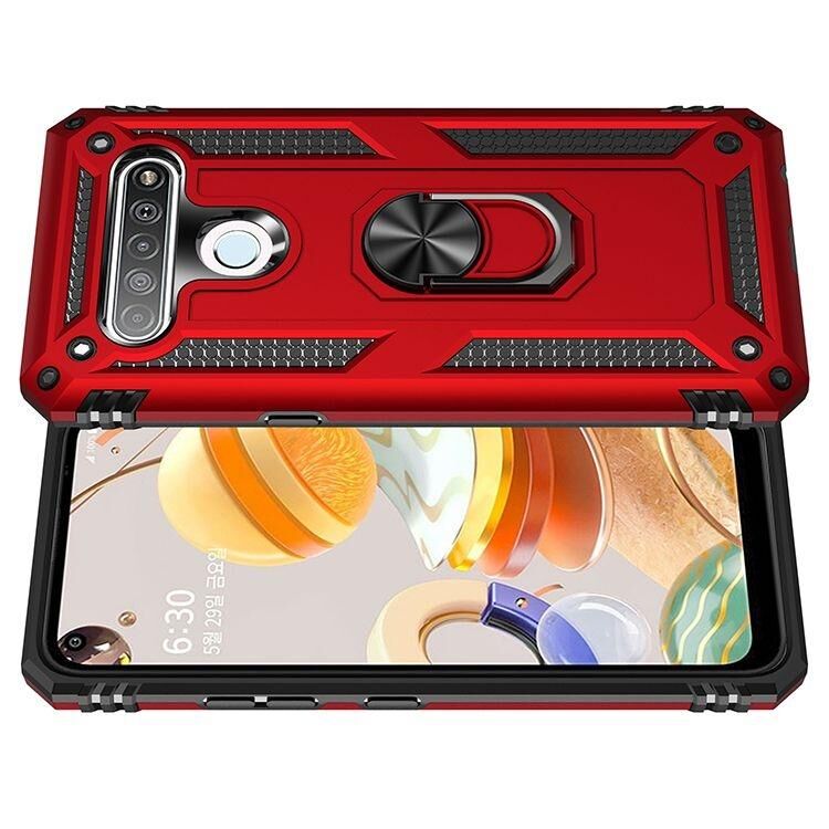 Θήκη προστασίας για LG Q61 από TPU + PC ανθεκτική στις κρούσεις με περιστρεφόμενη βάση 360 μοιρών (Κόκκινη)