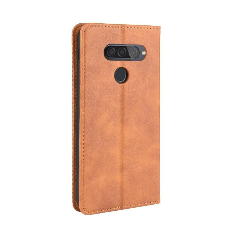 Για LG Q70 Μαγνητική πόρπη Retro Crazy Horse Υφή οριζόντια Flip δερμάτινη θήκη με θήκη & υποδοχές για κάρτες & πλαίσιο φωτογραφιών (καφέ)
