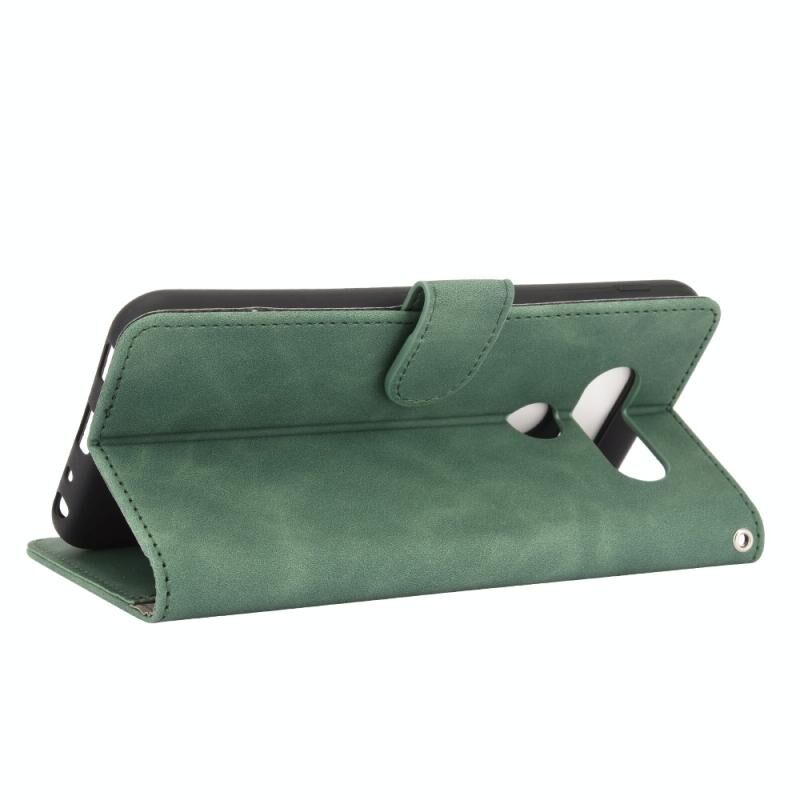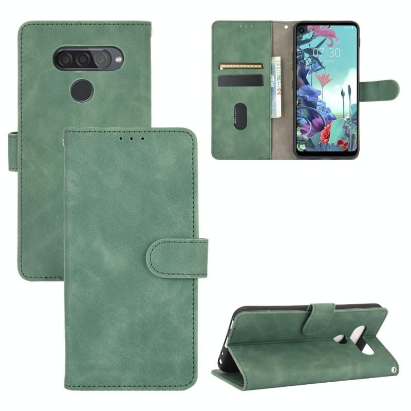 Για LG Q70 Solid Color Skin Feel μαγνητική πόρπη οριζόντια Flip μοσχάρι υφή PU δέρμα υπόθεση με κάτοχο & υποδοχές για κάρτες & πορτοφόλι (πράσινο)