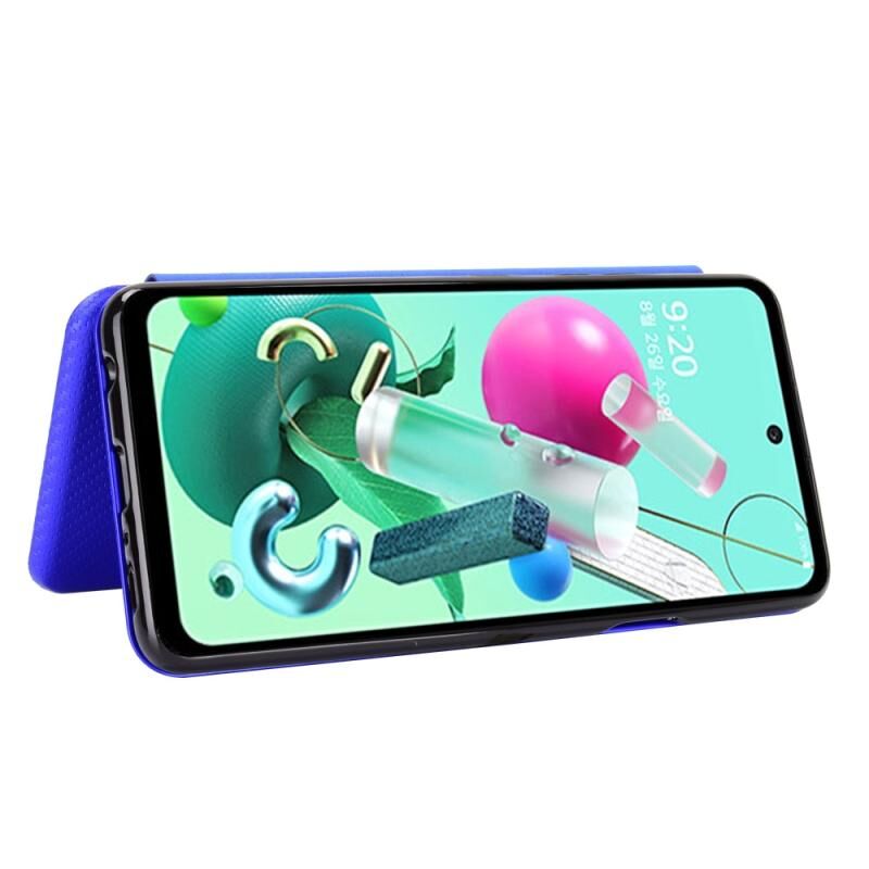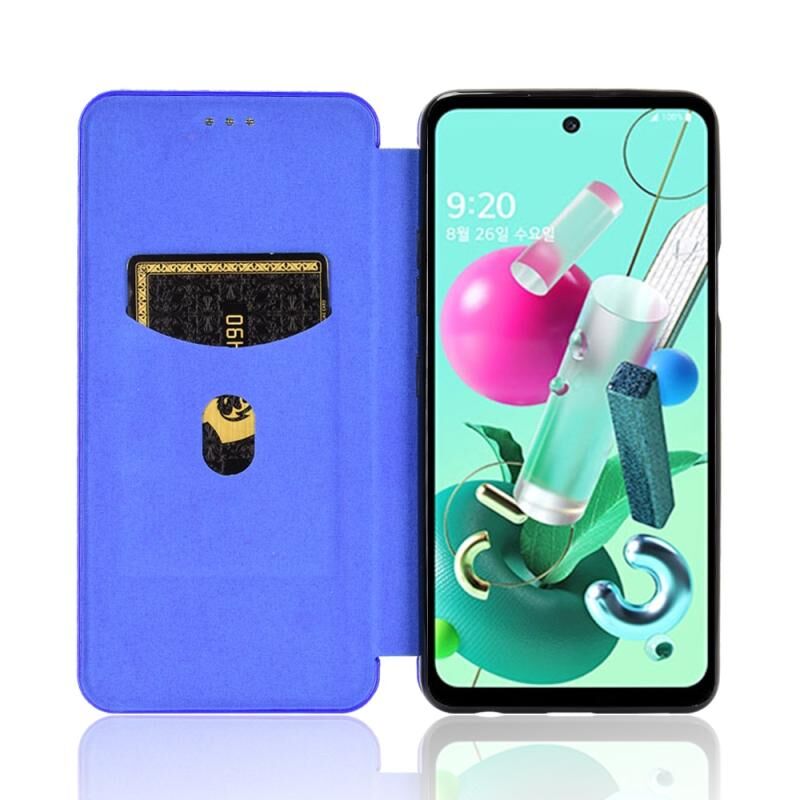 For LG Q92 5G Carbon Fiber Texture Horizontal Flip TPU + PC + PU Leather Case with Card Slot(Blue)