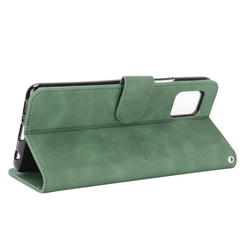 Για LG Q92 5G Solid Color Skin Feel μαγνητική πόρπη οριζόντια Flip μοσχάρι υφή PU δέρμα υπόθεση με κάτοχο & υποδοχές για κάρτες & πορτοφόλι (πράσινο)