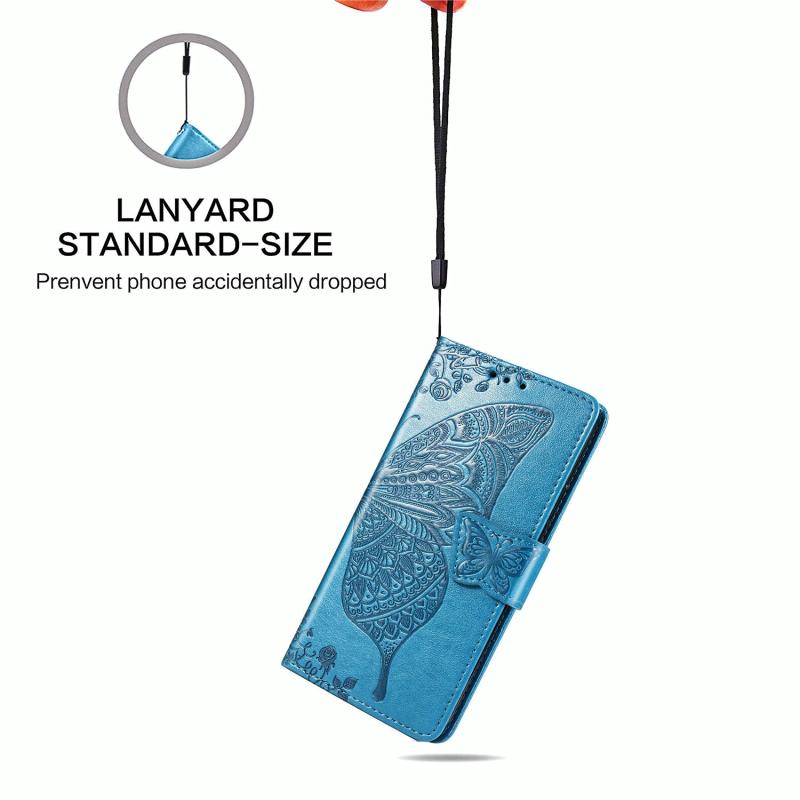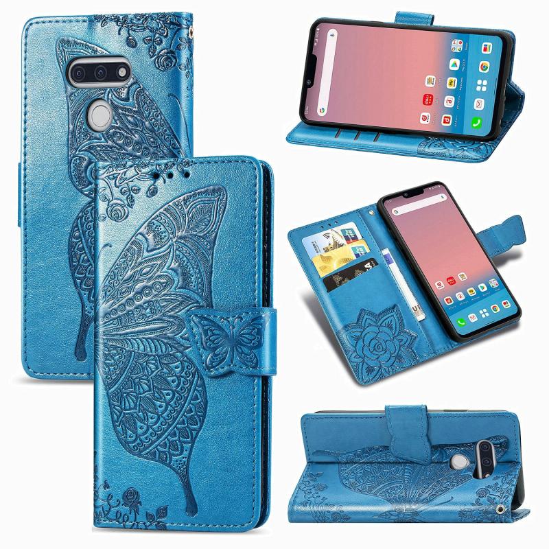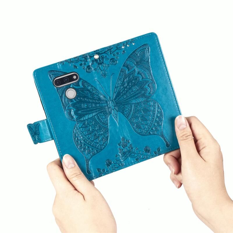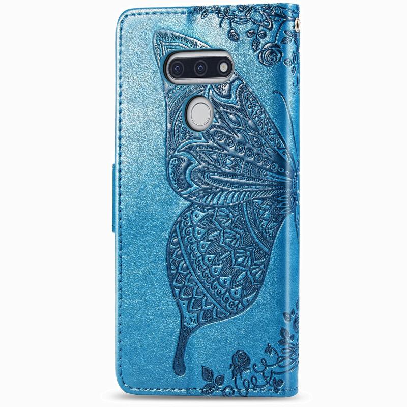For LG Style3 L-41A Butterfly Love Flower Embossed Horizontal Flip Leather Case with Bracket / Card Slot / Wallet / Lanyard(Blue)