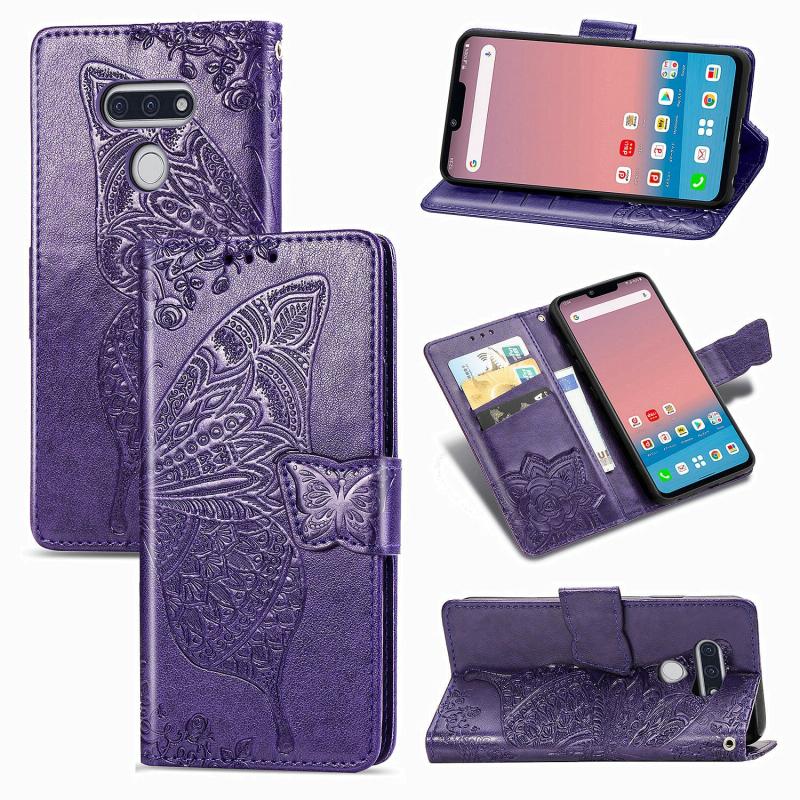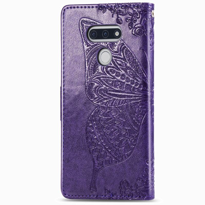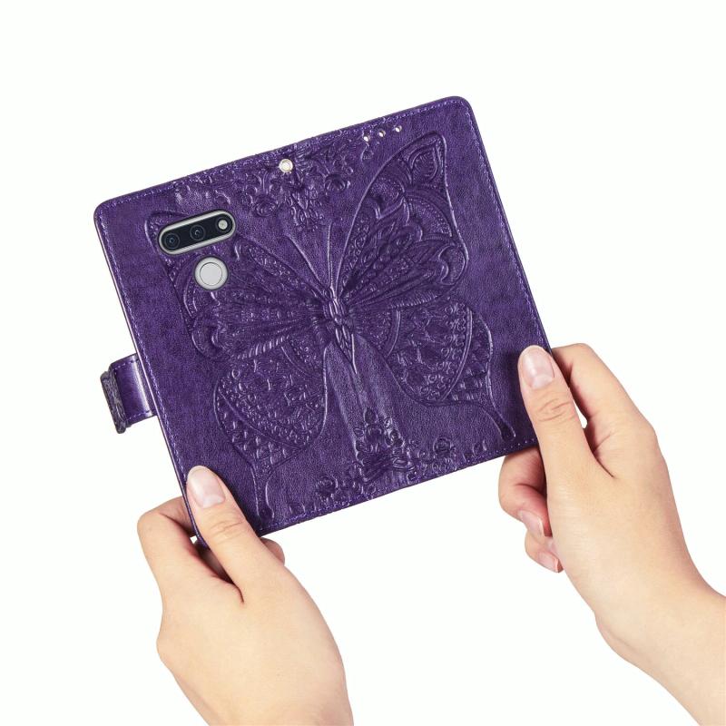 For LG Style3 L-41A Butterfly Love Flower Embossed Horizontal Flip Leather Case with Bracket / Card Slot / Wallet / Lanyard(Dark Purple)