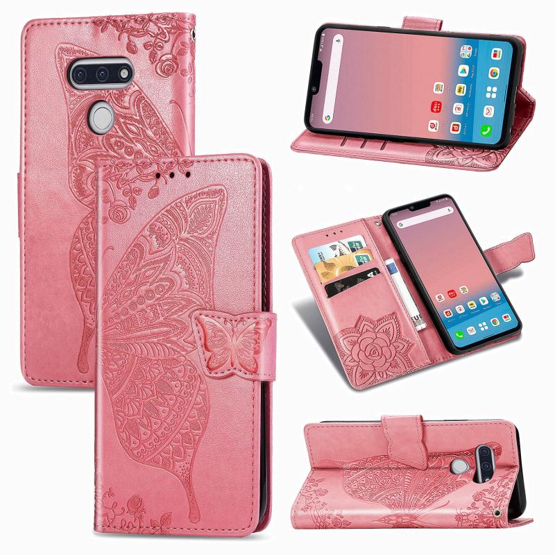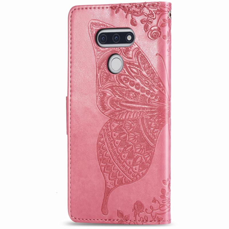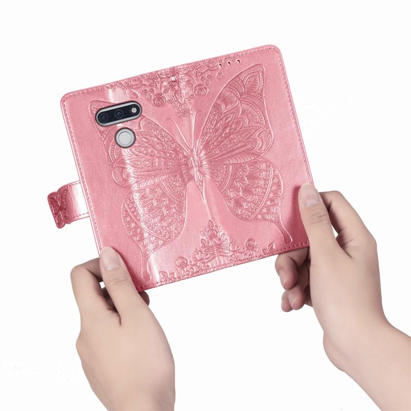For LG Style3 L-41A Butterfly Love Flower Embossed Horizontal Flip Leather Case with Bracket / Card Slot / Wallet / Lanyard(Pink)
