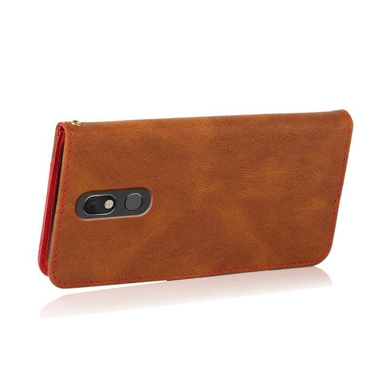 Θήκη τηλεφώνου από δέρμα με διπλή ραφή για LG Stylo 5 (Καφέ Κόκκινο)