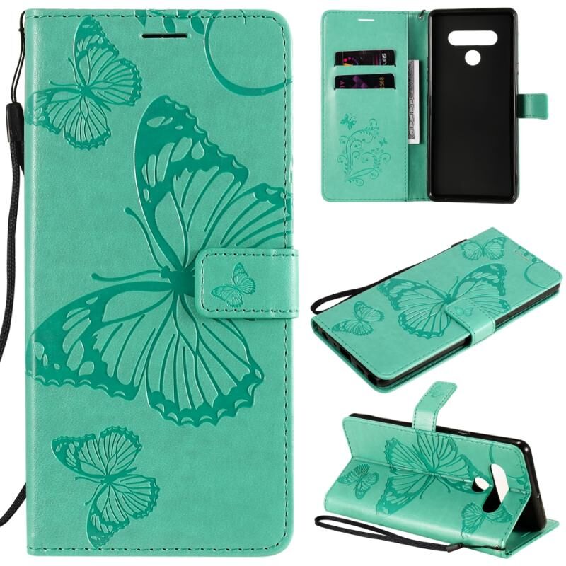Για LG Stylo 6 3D Πεταλούδα ανάγλυφο σχέδιο οριζόντια θήκη από δέρμα με βάση & υποδοχή κάρτας & πορτοφόλι & κορδόνι (Πράσινο)