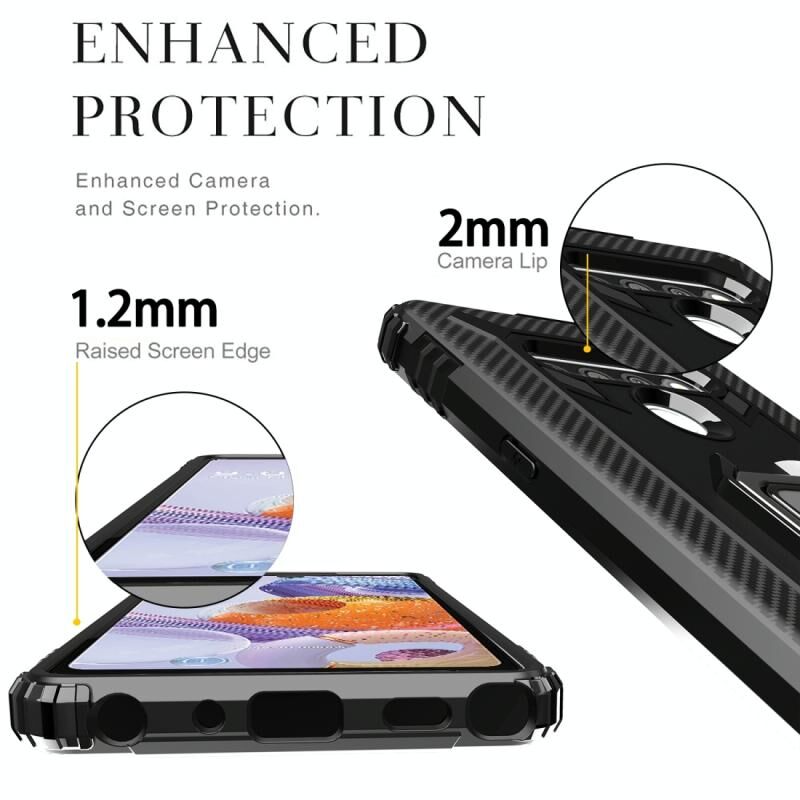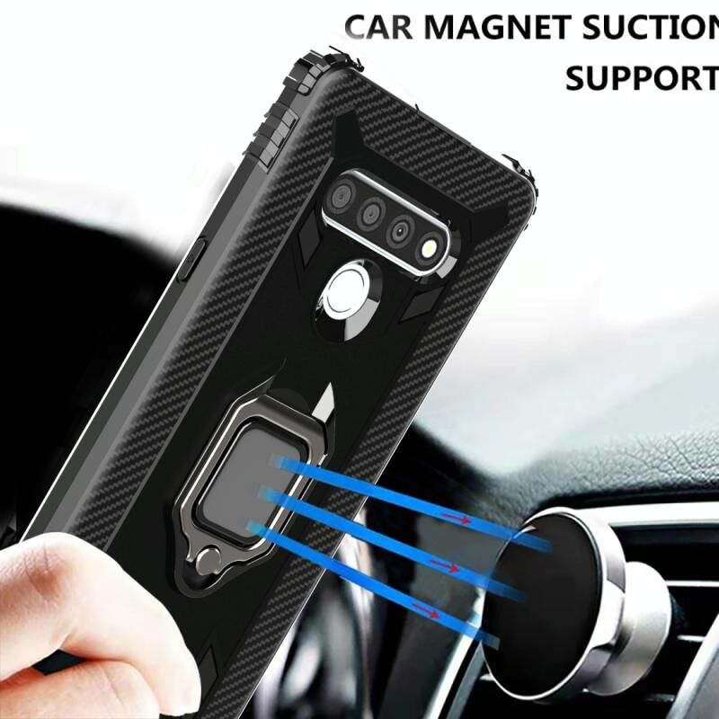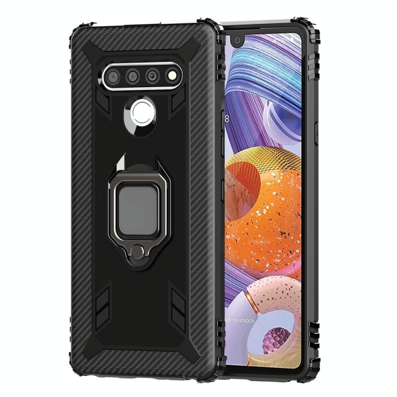 Για LG Stylo 6 Carbon Fiber Προστατευτική θήκη με 360 μοίρες περιστρεφόμενη θήκη δακτυλίου (Μαύρο)
