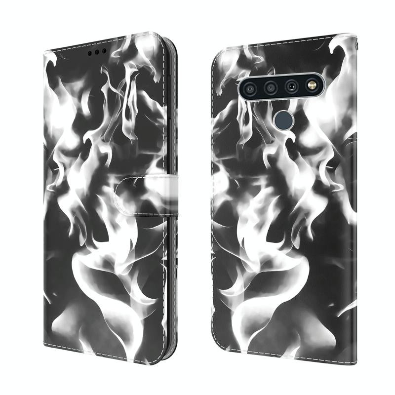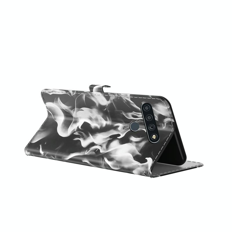 Θήκη δέρματος οριζόντιας αναδίπλωσης με σχέδιο σύννεφων και ομίχλης για LG Stylo 6 / K71 με βάση & υποδοχή κάρτας & πορτοφόλι (Μαύρο)