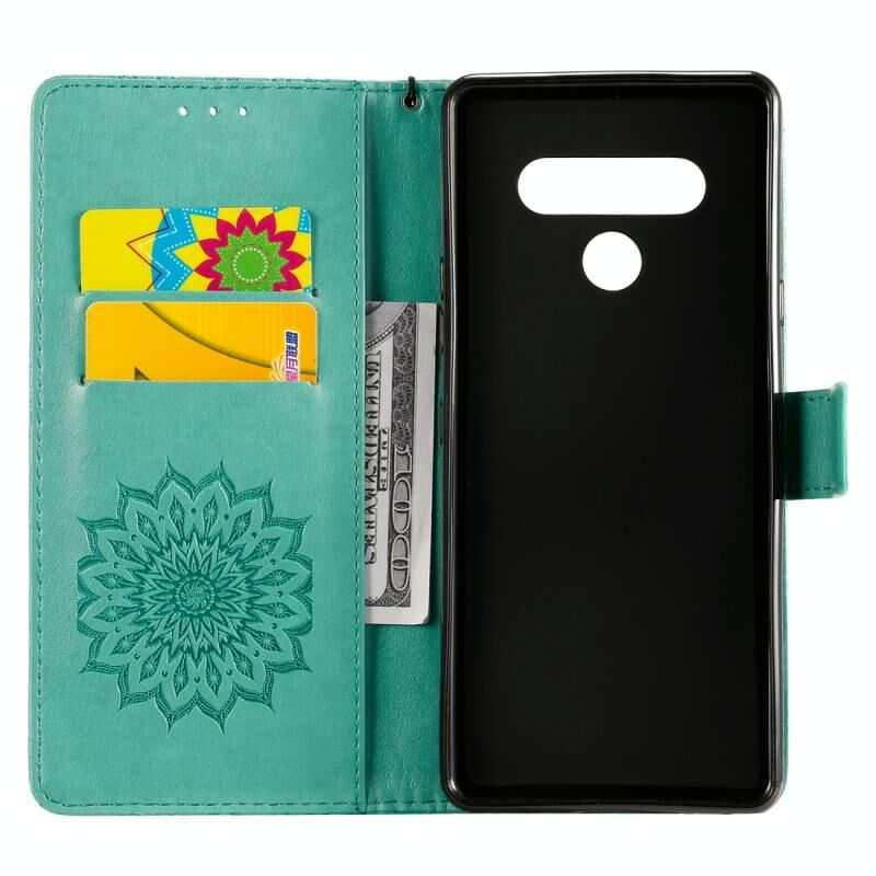 Για LG Stylo 6 Πιεσμένη εκτύπωση ηλιοτρόπιο μοτίβο οριζόντια Flip PU δέρμα θήκη κάτοχος & υποδοχές για κάρτες & πορτοφόλι & Lanyard (πράσινο)