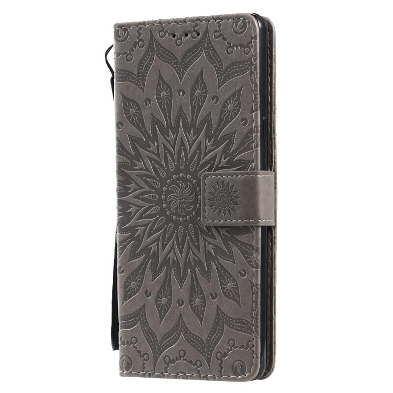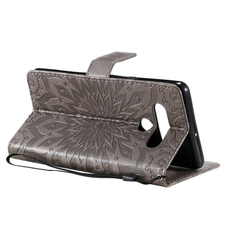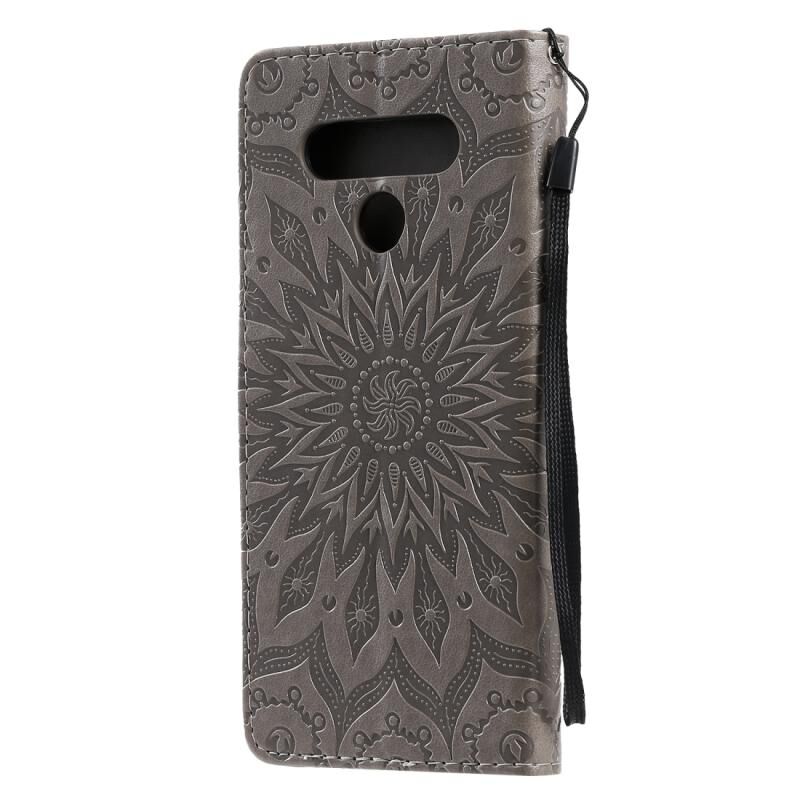 Για LG Stylo 6 Πιεσμένη εκτύπωση ηλιοτρόπιο μοτίβο οριζόντια Flip PU δέρμα θήκη κάτοχος & υποδοχές για κάρτες & πορτοφόλι & Lanyard (γκρι)