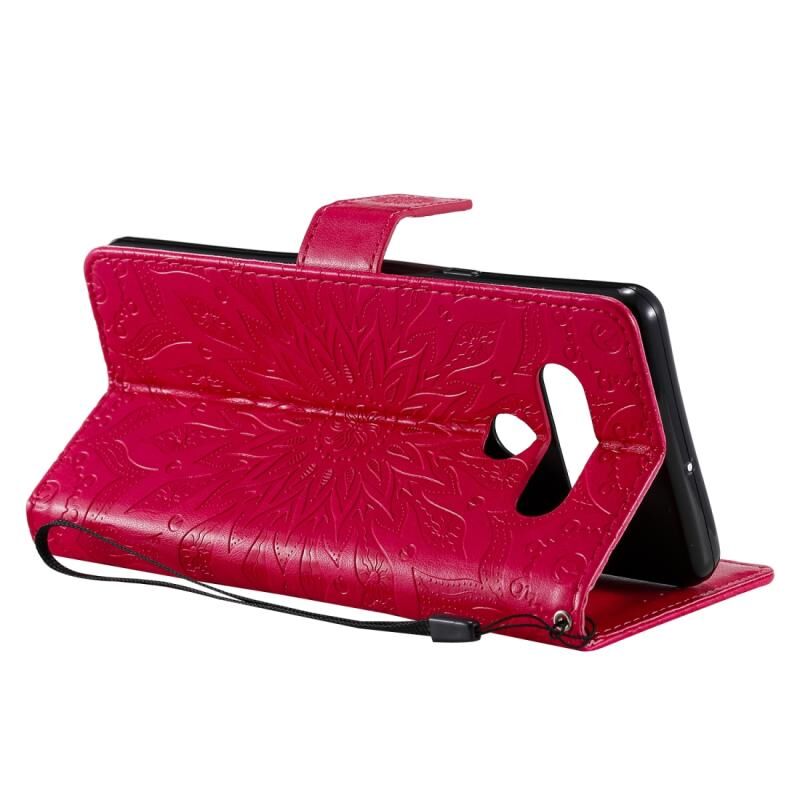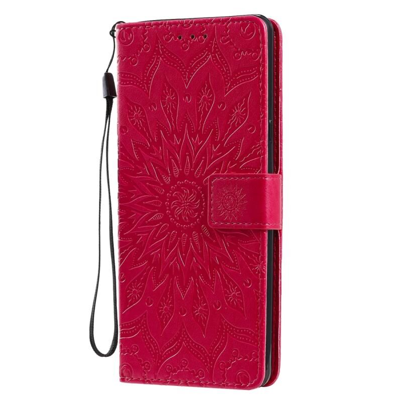 Για LG Stylo 6 Πιεσμένη εκτύπωση ηλιοτρόπιο μοτίβο οριζόντια Flip PU δέρμα θήκη κάτοχος & υποδοχές για κάρτες & πορτοφόλι & Lanyard (κόκκινο)