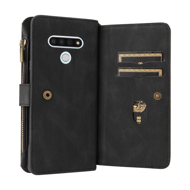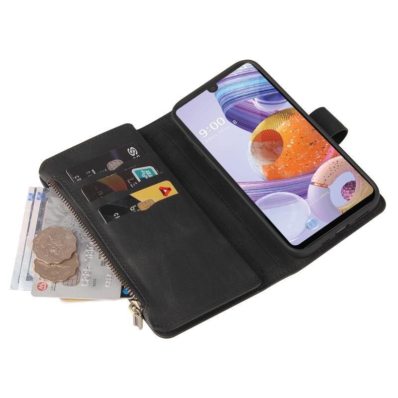 Για το LG Stylo 6 Skin Feel PU + TPU Οριζόντια Flip δερμάτινη θήκη με υποδοχή & 15 κάρτες Slot & πορτοφόλι & φερμουάρ τσέπη & Lanyard (Μαύρο)