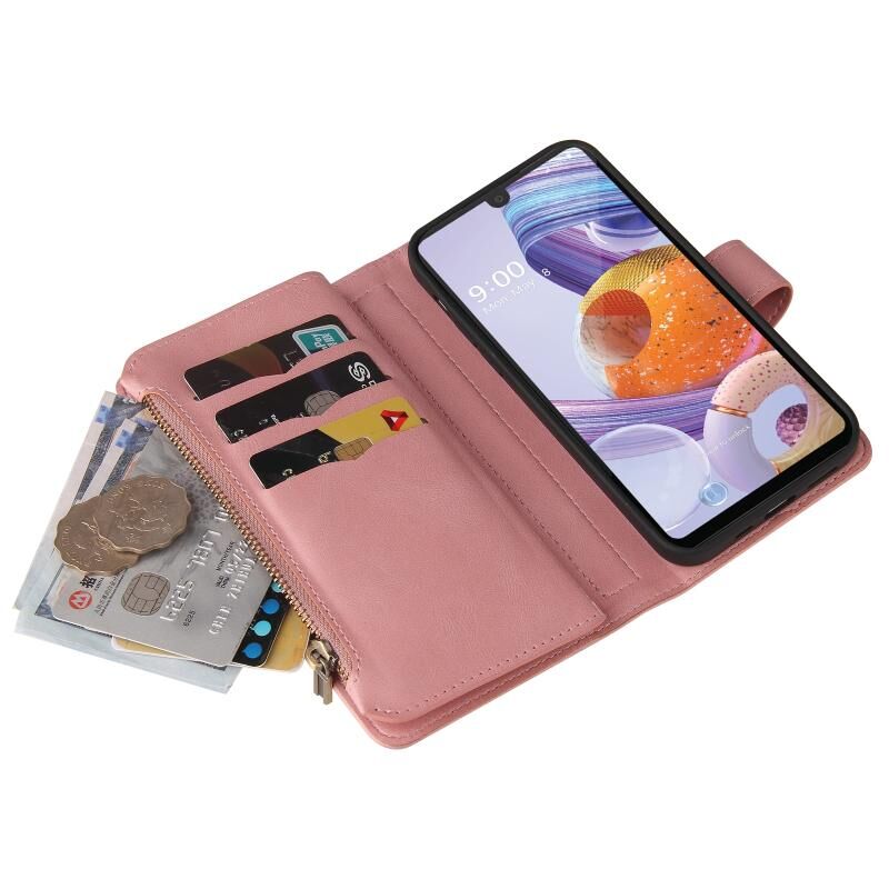 Για το LG Stylo 6 Skin Feel PU + TPU Οριζόντια Flip δερμάτινη θήκη με υποδοχή & 15 κάρτες Slot & πορτοφόλι & φερμουάρ τσέπη & Lanyard (ροζ)