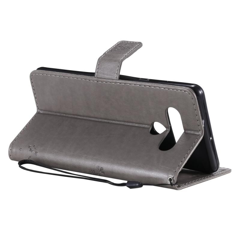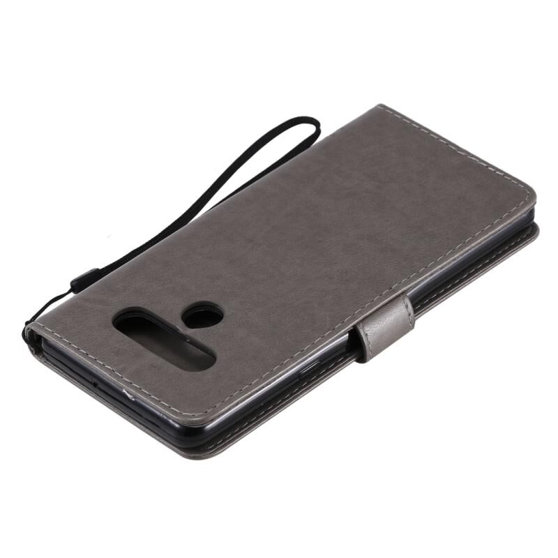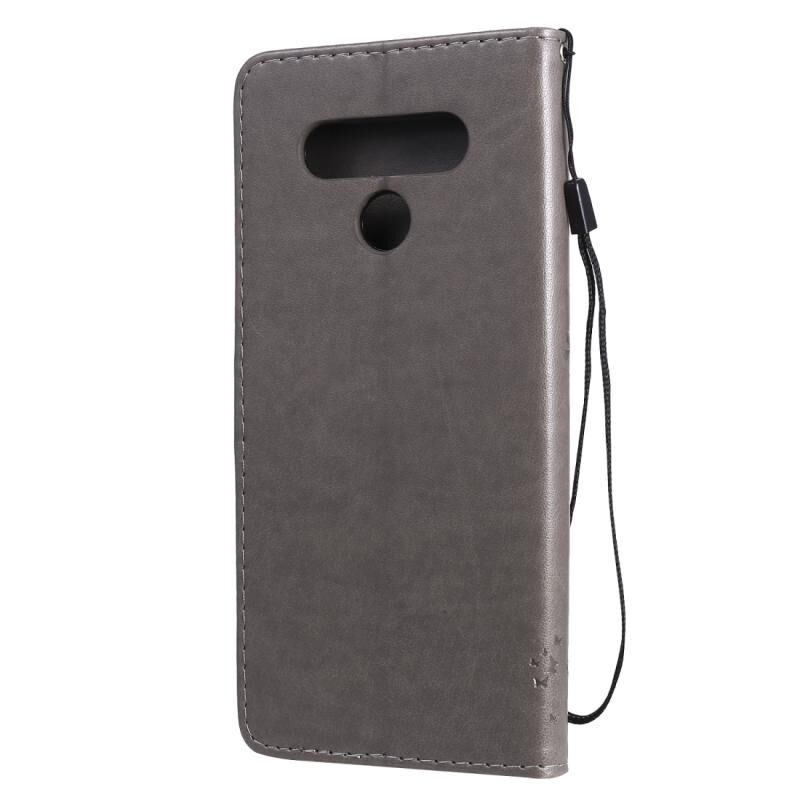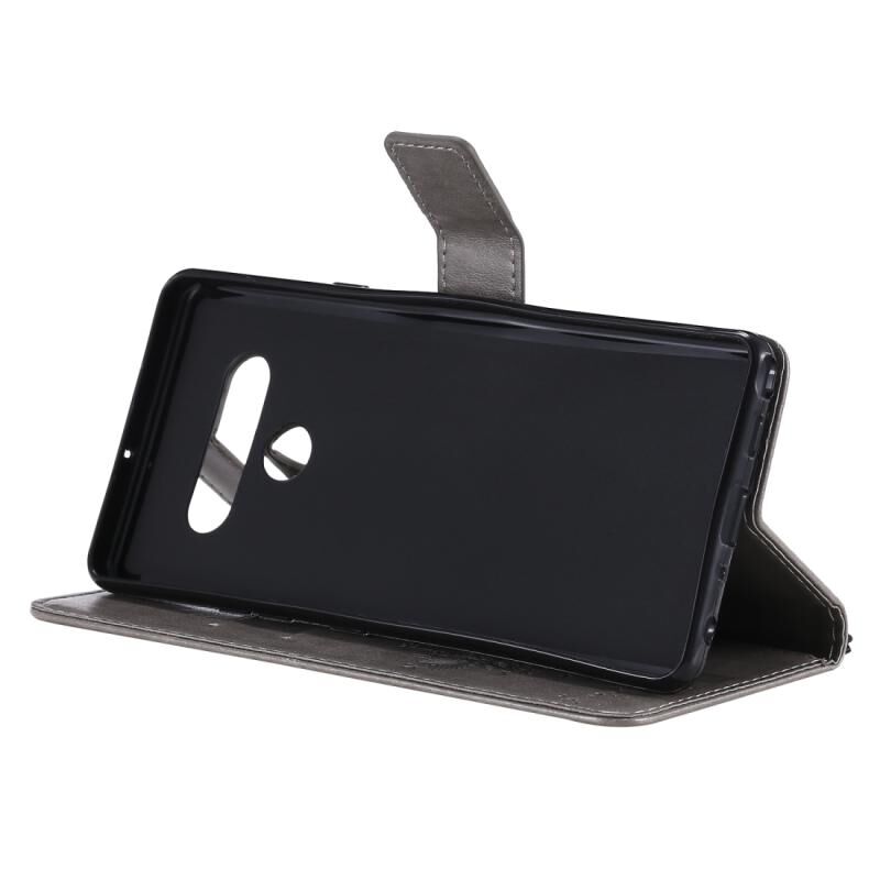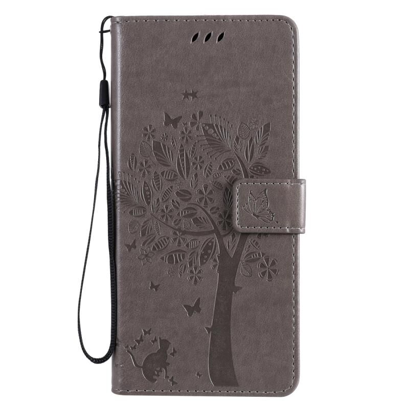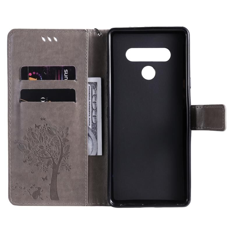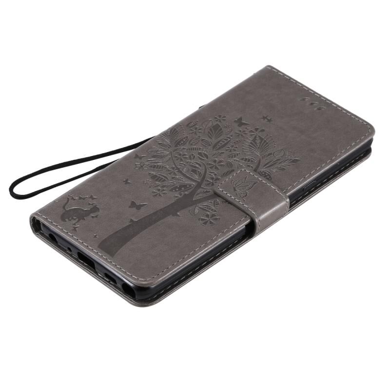 For LG Stylo 6 Tree & Cat Embossed Pattern Horizontal Flip Leather Case with Holder & Card Slots & Wallet & Lanyard(Gray)