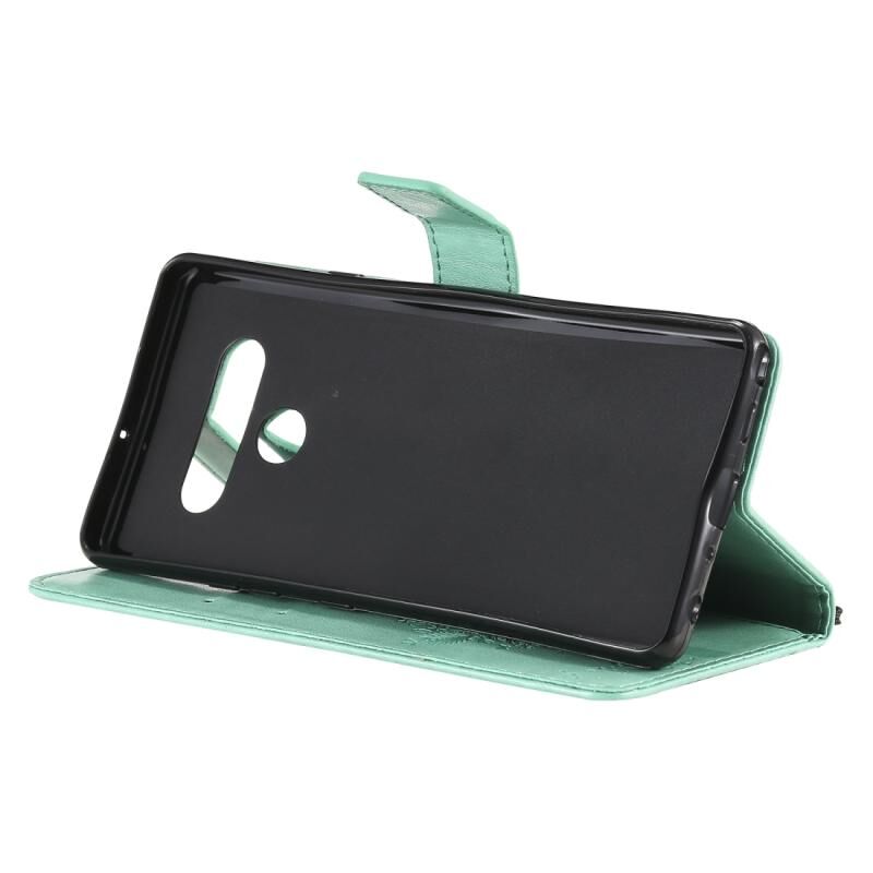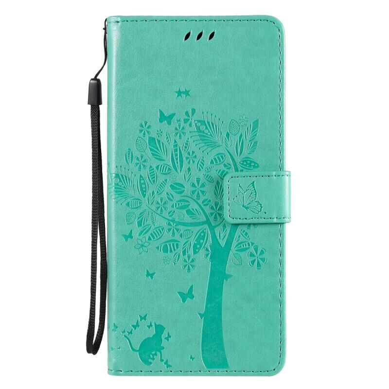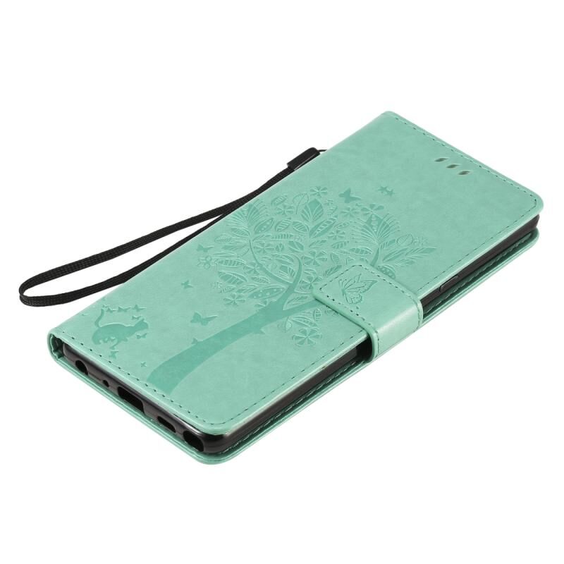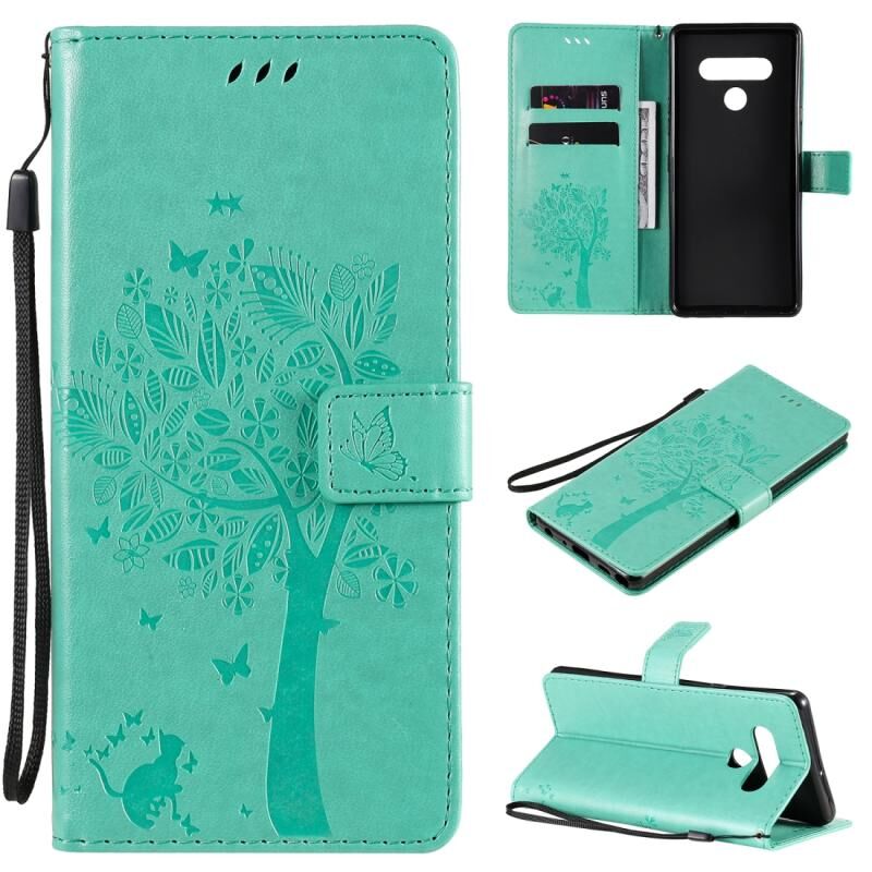Θήκη δέρματος οριζόντιας αναδίπλωσης για LG Stylo 6 με ανάγλυφο σχέδιο δέντρου & γάτας, με βάση στήριξης & υποδοχές καρτών & πορτοφόλι & κορδόνι (Πράσινο)