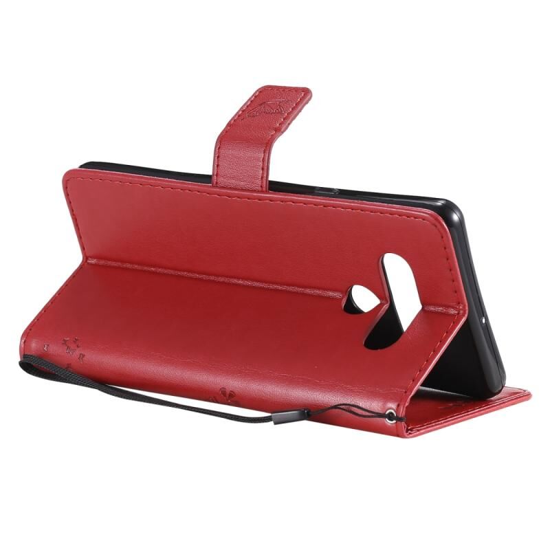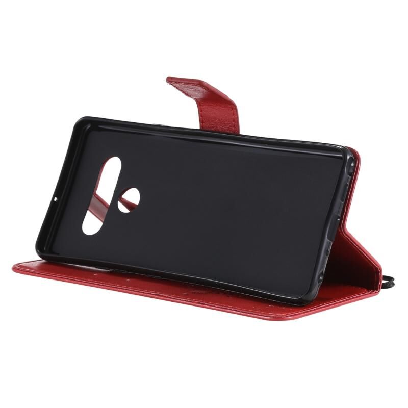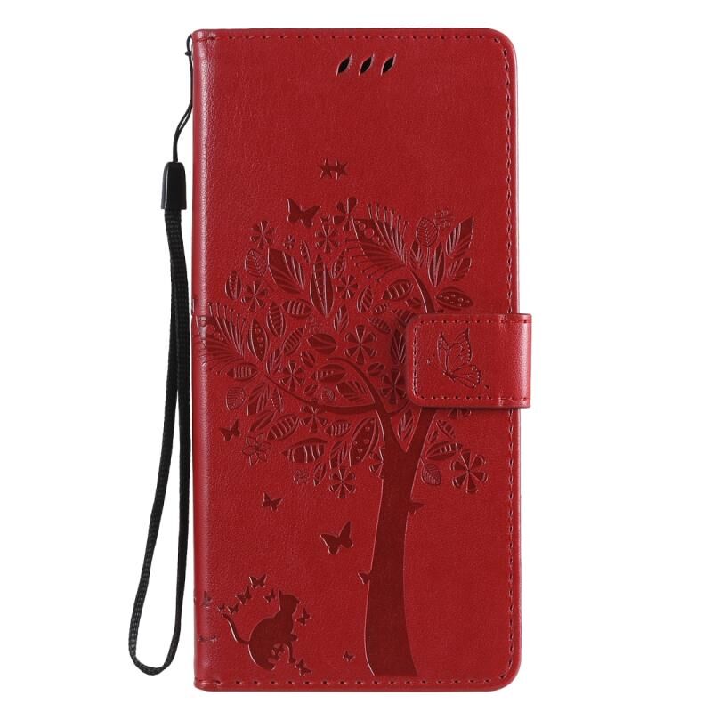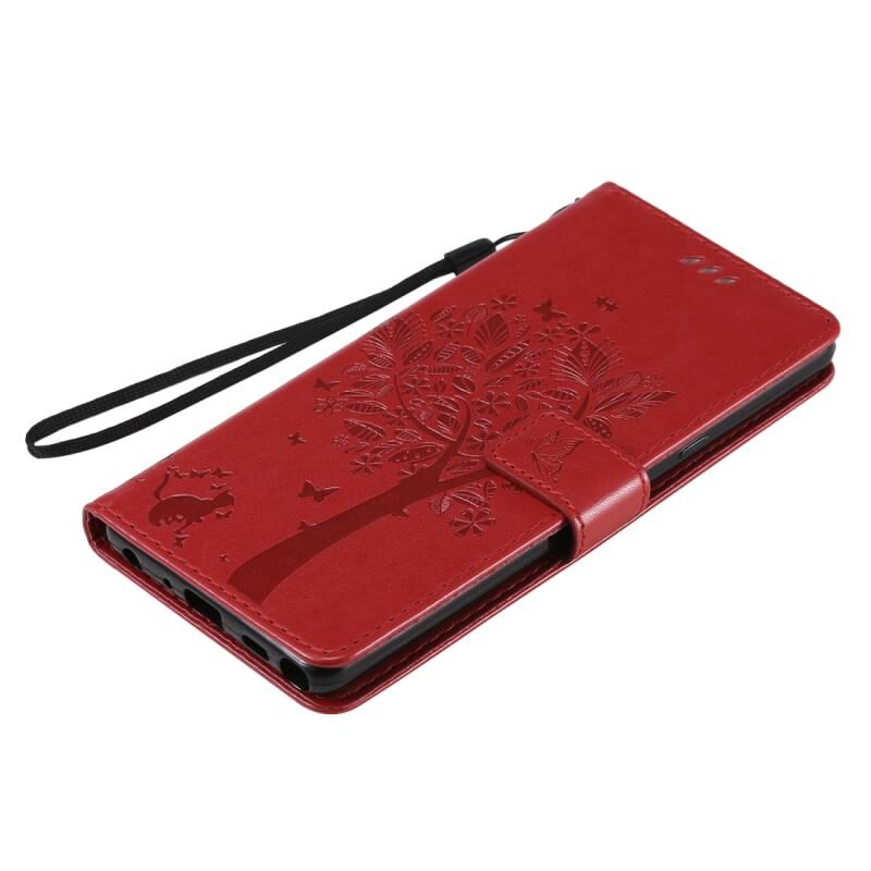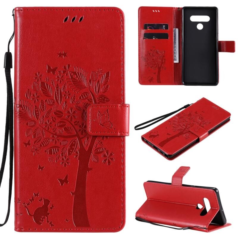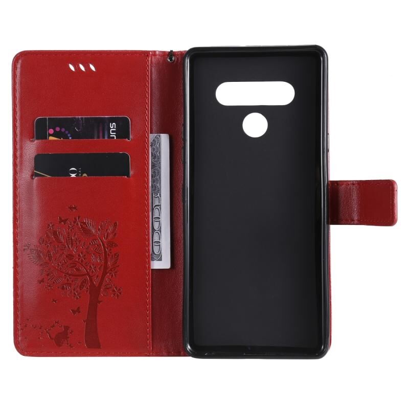Θήκη για LG Stylo 6, Δερμάτινη οριζόντια με σχέδιο δέντρου & γάτας σε ανάγλυφο, με βάση, θήκες για κάρτες, πορτοφόλι & λουρί (Χρυσό ροζ)