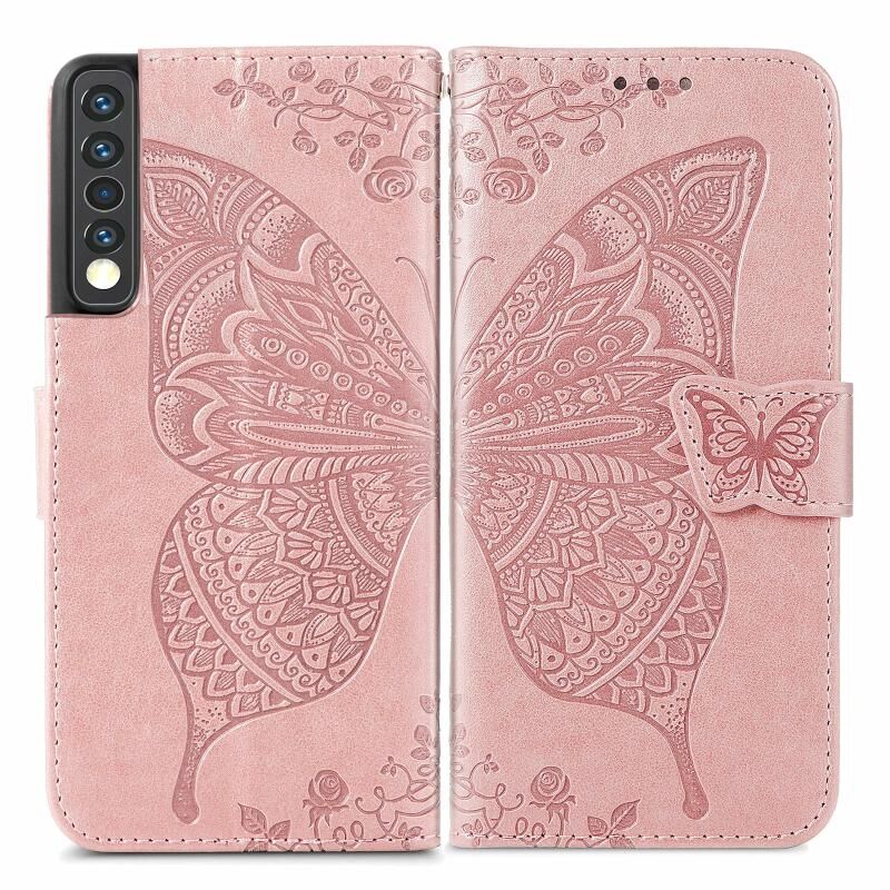 Για LG Stylo 7 4G πεταλούδα αγάπη λουλούδι ανάγλυφο οριζόντια Flip δερμάτινη θήκη με βραχίονα / Υποδοχή κάρτας / πορτοφόλι / Lanyard (Rose Gold)
