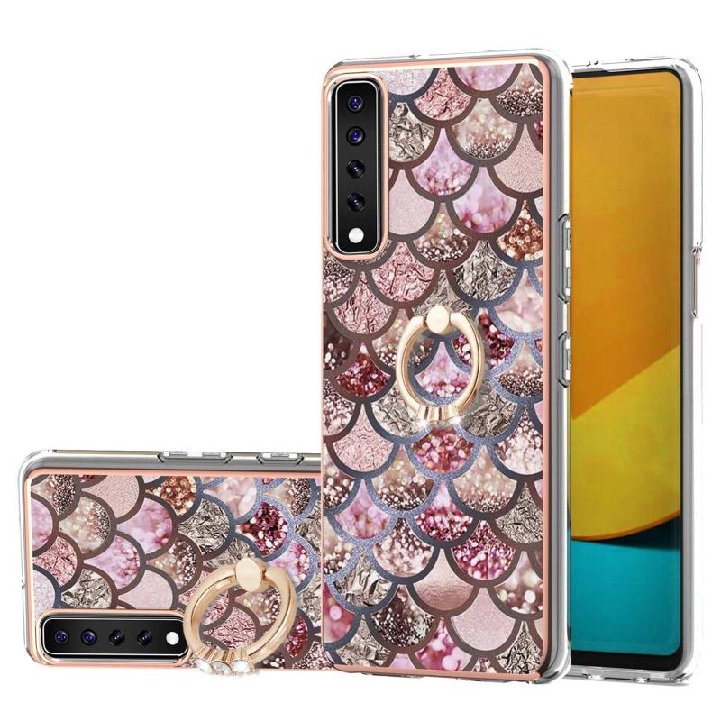 Θήκη για LG Stylo 7 4G με Γαλβανισμένο Σχέδιο IMD TPU Αντικραδασμική με Δαχτυλίδι Στήριξης και Ρητίνες (Μωβ Λουλούδι)