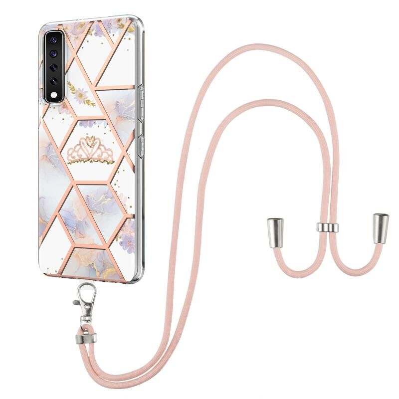 Για LG Stylo 7 4G Θήκη προστασίας από TPU με ηλεκτρολυτική επιμετάλλωση, συνδυασμό μαρμάρου και λουλουδιών, αντικραδασμική με κορδόνι (Imperial Crown)