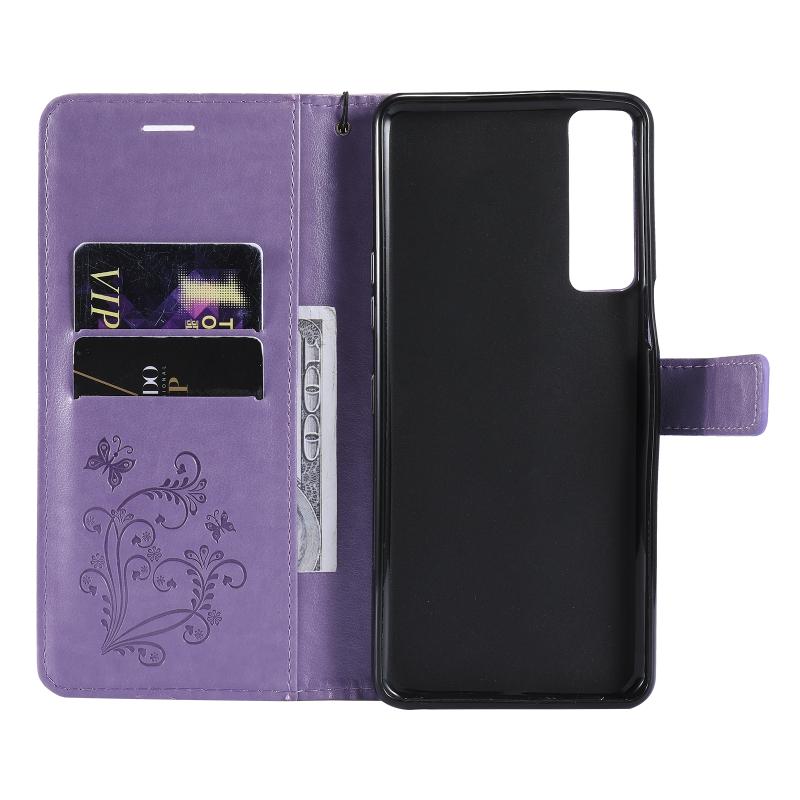 Για LG Stylo 7 5G / 4G Θήκη από Δερματίνη PU με Οριζόντιο Άνοιγμα, με Εκτυπωμένο Σχέδιο Πεταλούδας, με Θήκη, Θήκες Καρτών, Πορτοφόλι & Λουρί (Χρυσό Ρόδι)