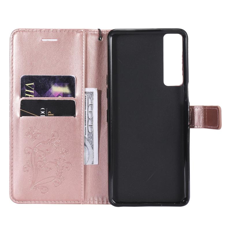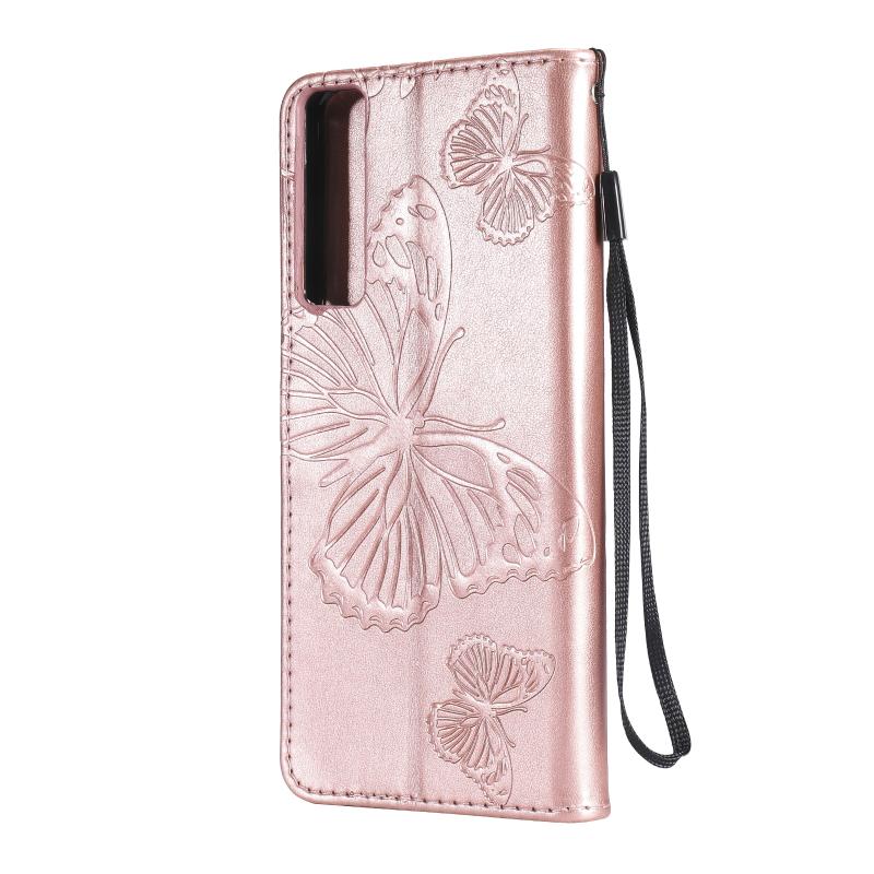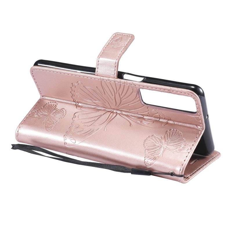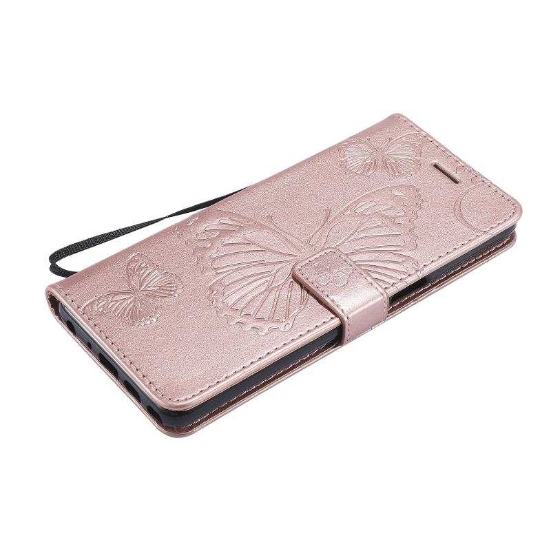 Για LG Stylo 7 5G / 4G Θήκη από Δερματίνη PU με Οριζόντιο Άνοιγμα, με Εκτυπωμένο Σχέδιο Πεταλούδας, με Θήκη, Θήκες Καρτών, Πορτοφόλι & Λουρί (Χρυσό Ρόδι)
