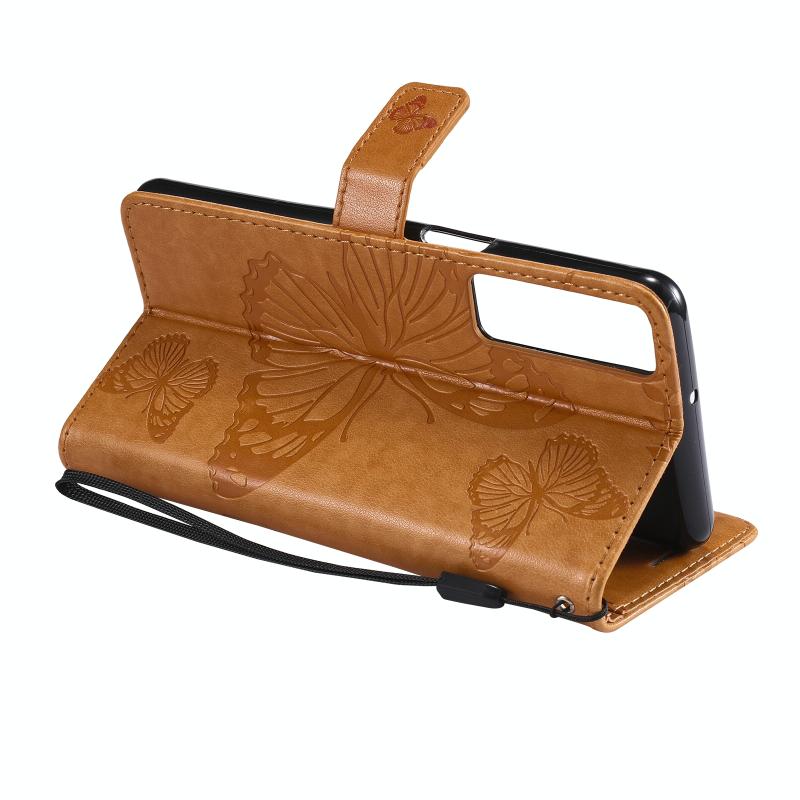 Για LG Stylo 7 5G / 4G Θήκη από Δερματίνη PU με Οριζόντιο Άνοιγμα, με Εκτυπωμένο Σχέδιο Πεταλούδας, με Θήκη, Θήκες Καρτών, Πορτοφόλι & Λουρί (Χρυσό Ρόδι)