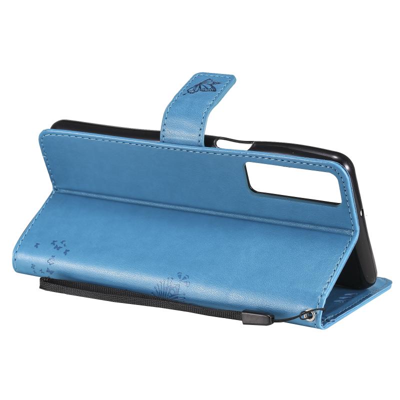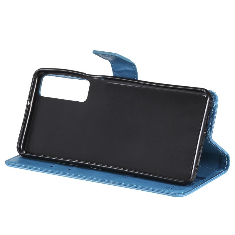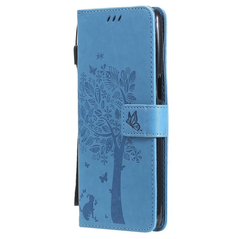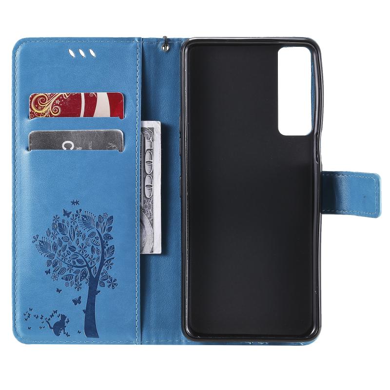 Θήκη για LG Stylo 7 5G / 4G με σχέδιο δέντρου & γάτας, εκτυπωμένη με θερμοτύπηση, οριζόντια, από δερματίνη PU με βάση στήριξης & θήκες για κάρτες & πορτοφόλι & κορδόνι (Μπλε)