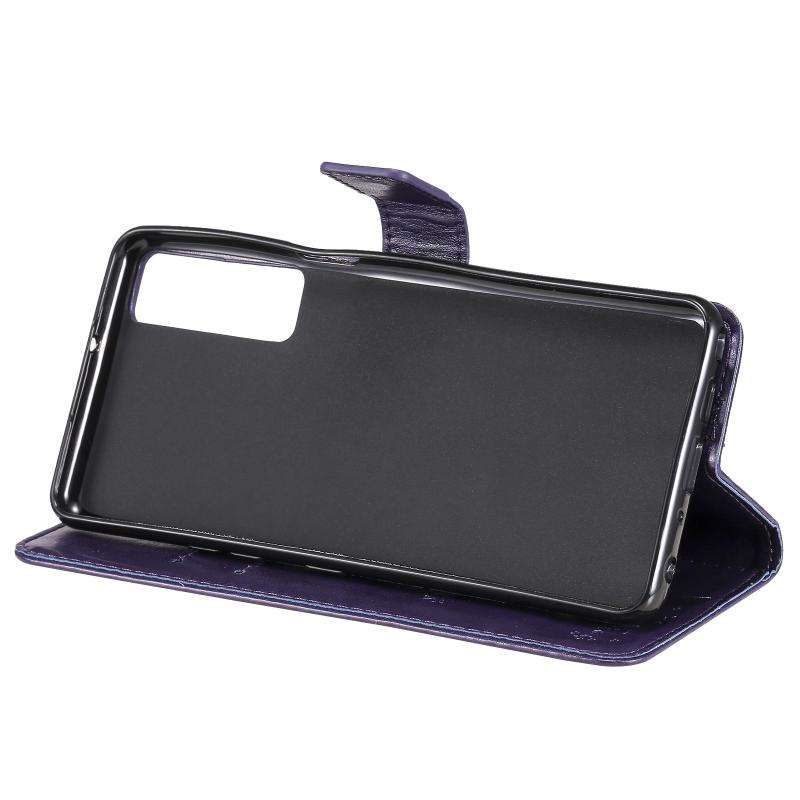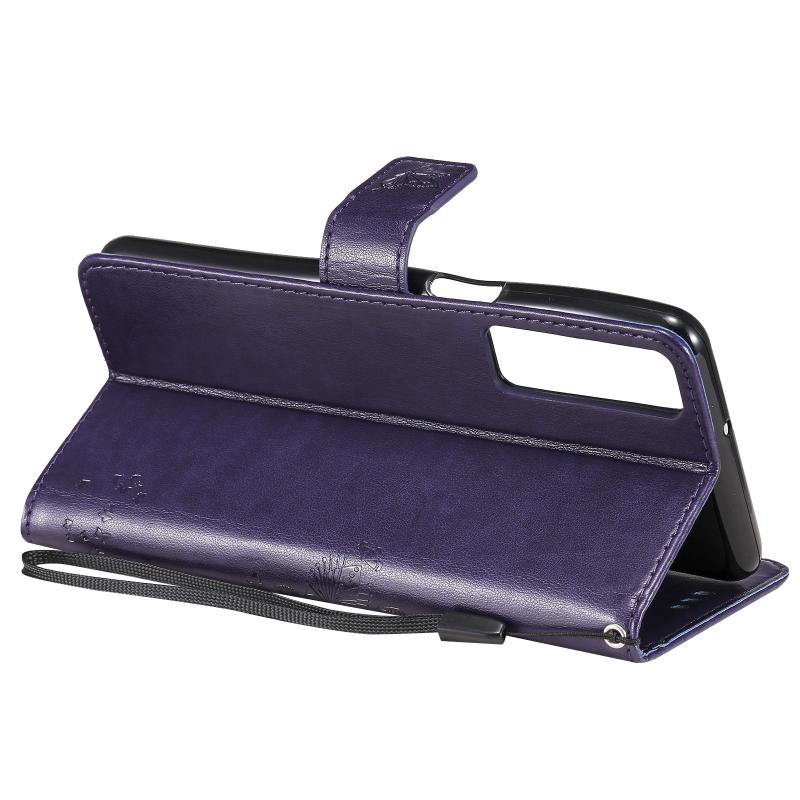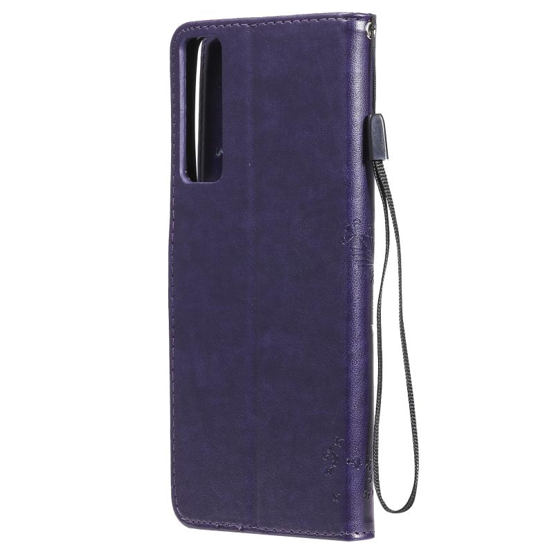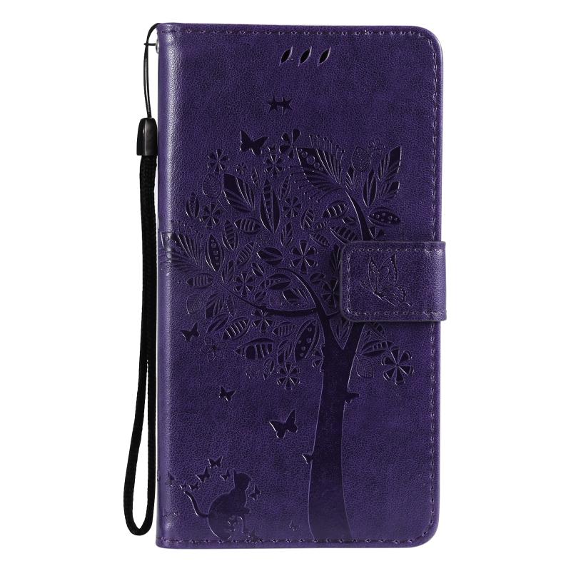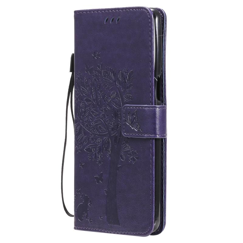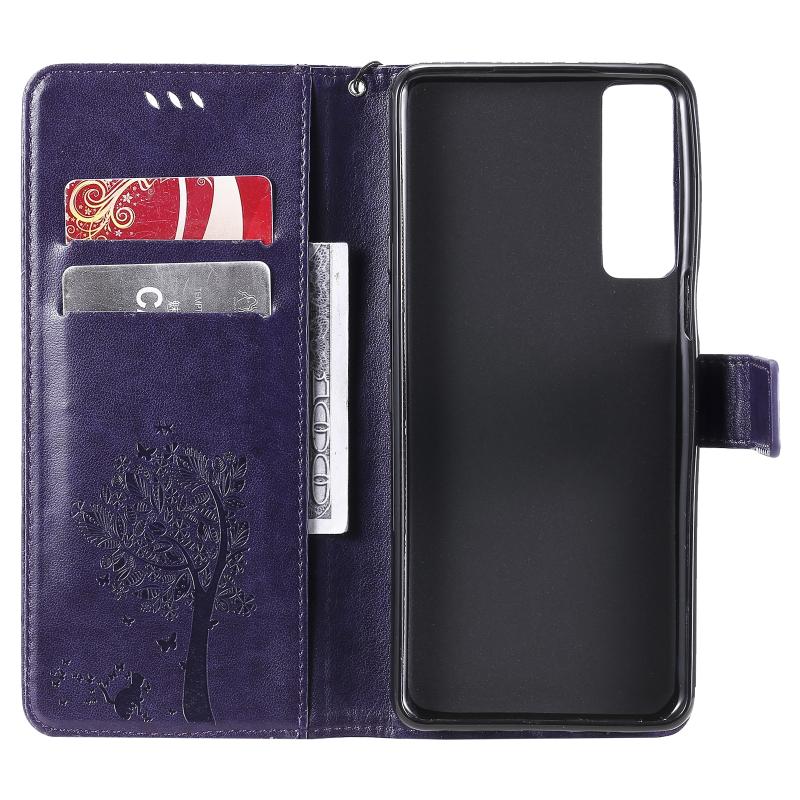 Θήκη για LG Stylo 7 5G / 4G με σχέδιο δέντρου & γάτας, εκτυπωμένη με θερμοτύπηση, οριζόντια, από δερματίνη PU με βάση στήριξης & θήκες για κάρτες & πορτοφόλι & κορδόνι (Χρυσό)