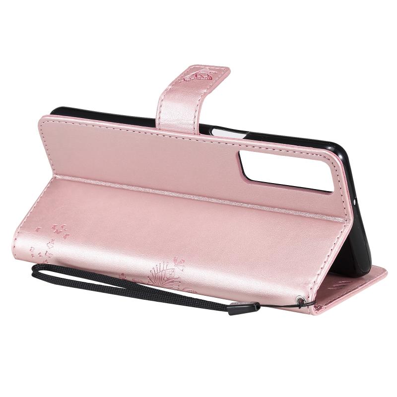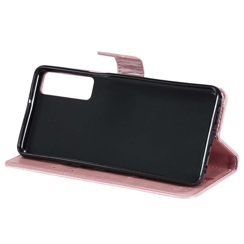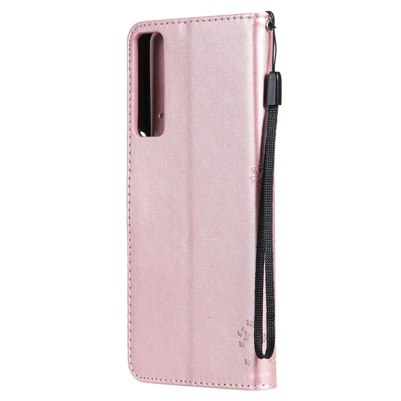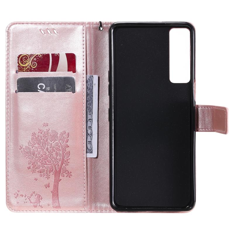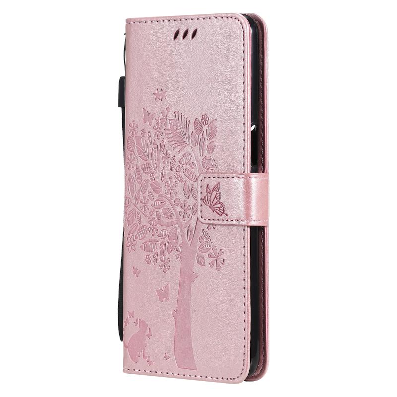 Θήκη για LG Stylo 7 5G / 4G με σχέδιο δέντρου & γάτας, εκτυπωμένη με θερμοτύπηση, οριζόντια, από δερματίνη PU με βάση στήριξης & θήκες για κάρτες & πορτοφόλι & κορδόνι (Ροζ χρυσός)