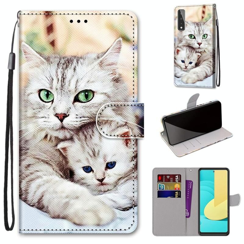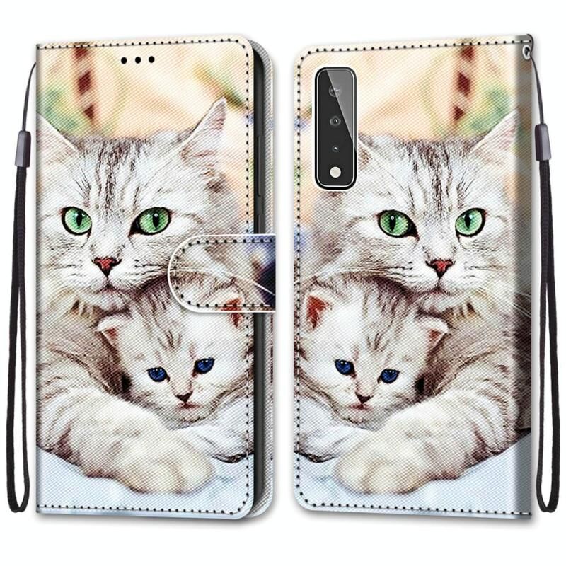 For LG Stylo 7 5G Coloured Drawing Cross Texture Horizontal Flip PU Leather Case with Holder & Card Slots & Wallet & Lanyard(Big Cat Holding Kitten)