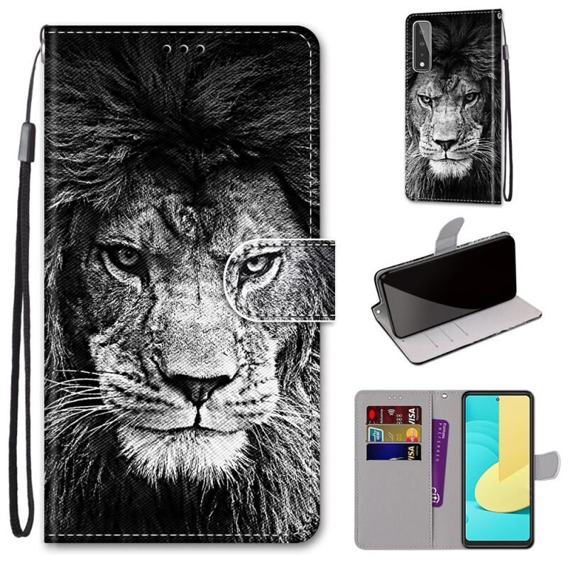 For LG Stylo 7 5G Coloured Drawing Cross Texture Horizontal Flip PU Leather Case with Holder & Card Slots & Wallet & Lanyard(Black White Lion Head)