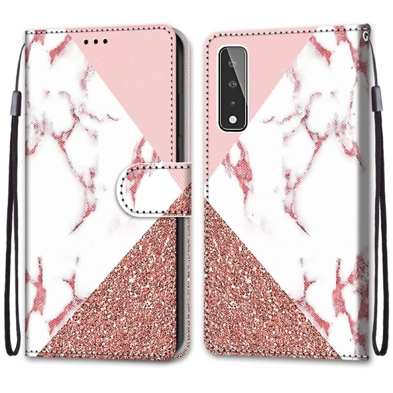 For LG Stylo 7 5G Coloured Drawing Cross Texture Horizontal Flip PU Leather Case with Holder & Card Slots & Wallet & Lanyard(Pink Stone Texture)